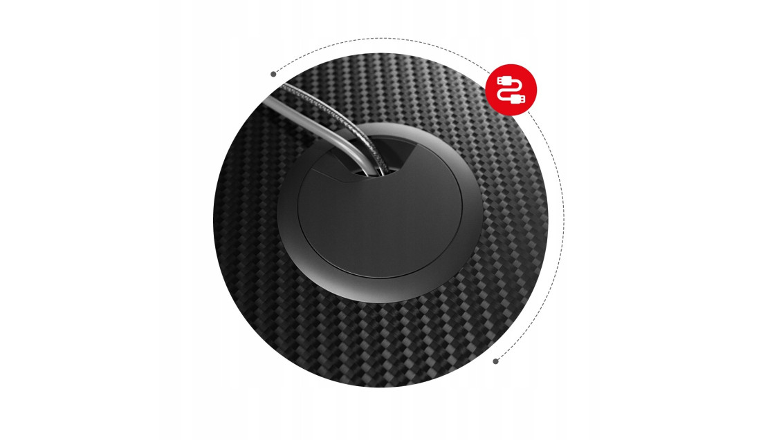 Symetrycznie rozmieszczone po obu stronach blatu wloty ułatwiają organizację całego stanowiska komputerowego. Z ich pomocą wygodnie zorganizujesz wszystkie przewody tak, aby nie plątały się na blacie albo pod nogami.