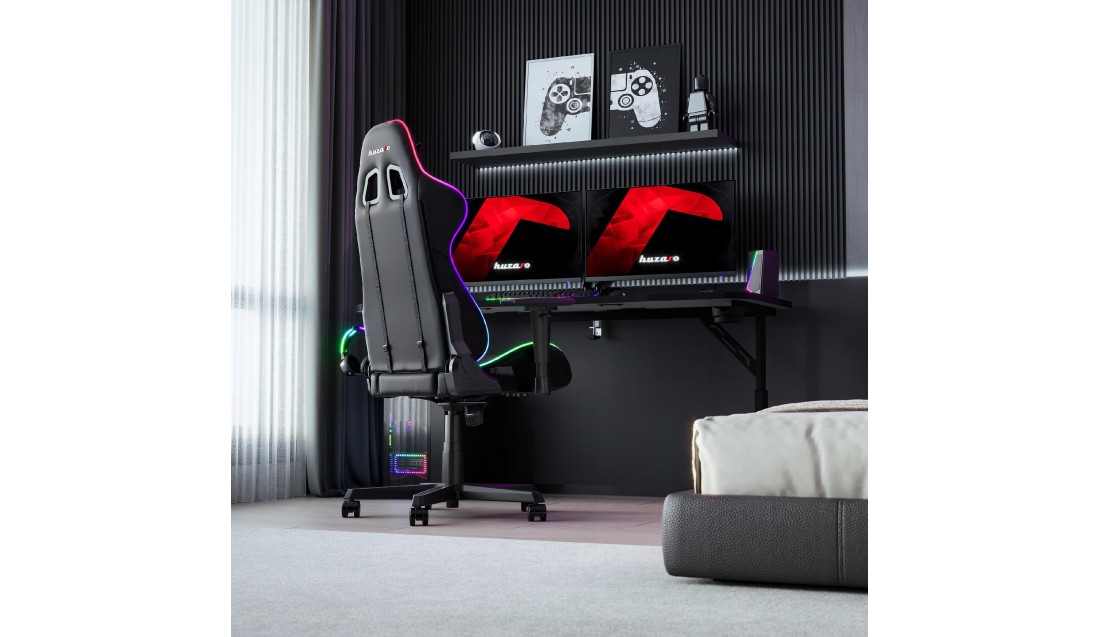Prawdziwy kolos wśród biurek gamingowych – pomieści dwa, a nawet trzy monitory, pełny zestaw akcesoriów, mikrofon, konsole i dodatkowe akcesoria.