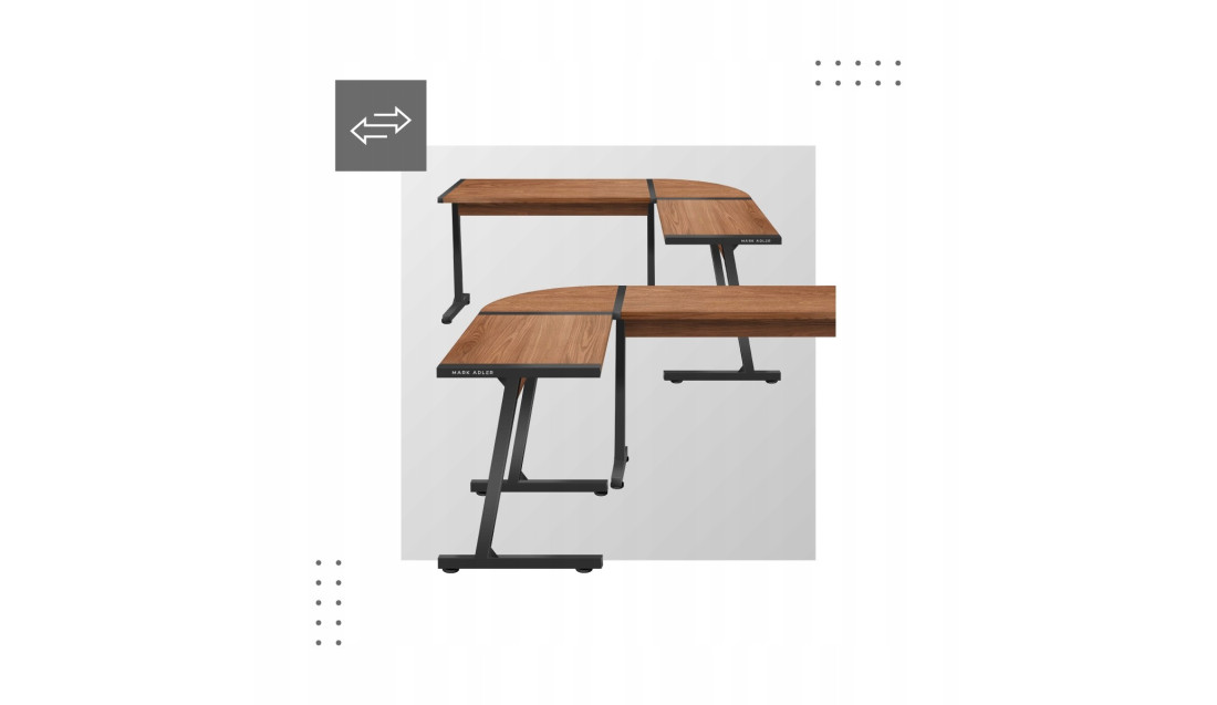 Mebel został tak przemyślany, aby dostosować się do Twojego wnętrza. W zależności od preferencji, biurko można więc zmontować na dwa sposoby: z szerszą dostawką z lewej lub z prawej strony. Decyzja należy do Ciebie, a cały proces jest bardzo prosty. Instrukcja obsługi poprowadzi Cię jak za rękę.