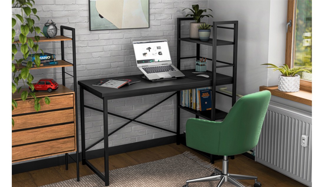 - Biurko z regałem szczególnie dobrze pasuje do wnętrz industrialnych, vintage i loftowych.