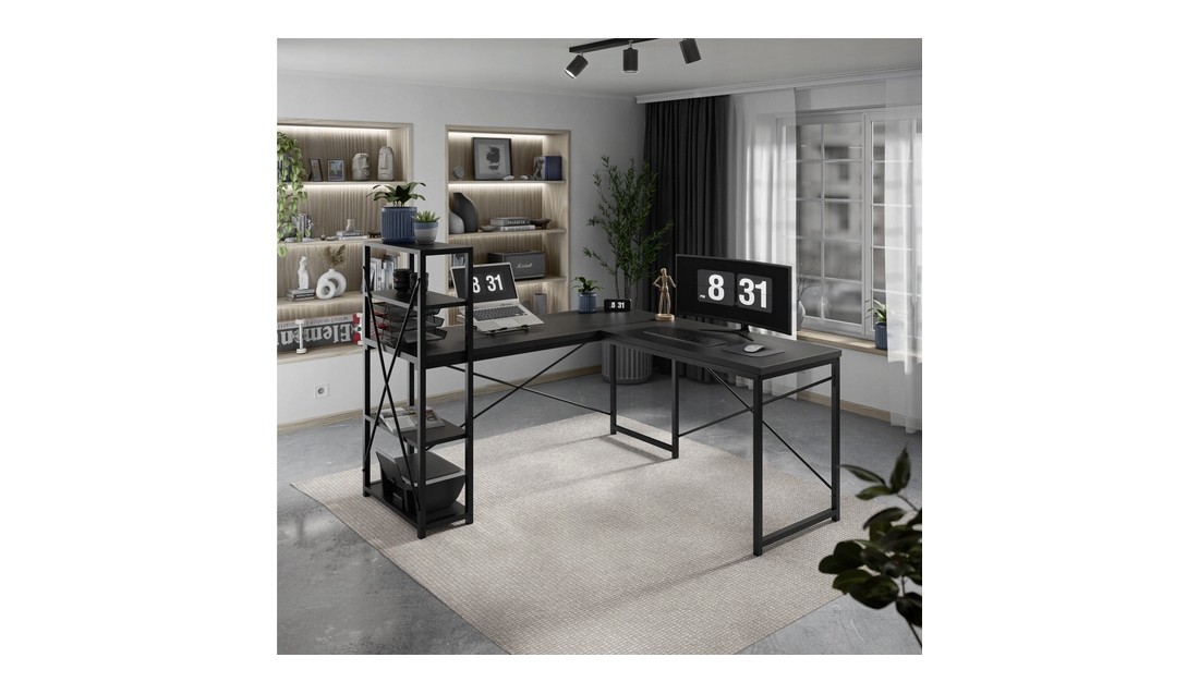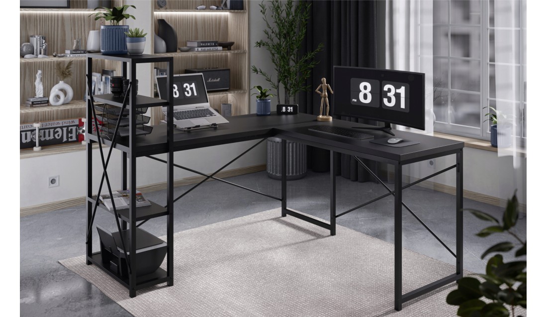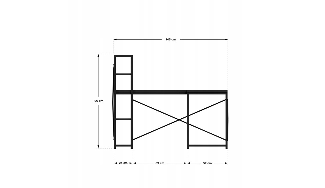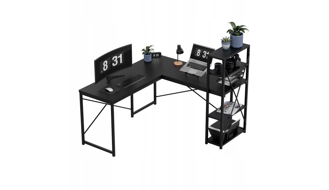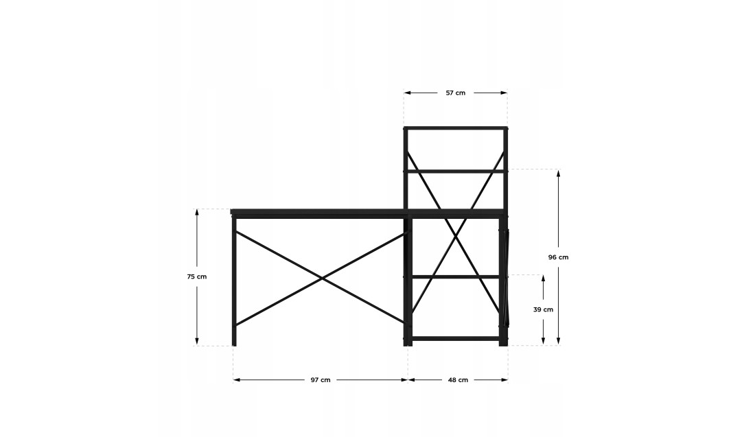 Duża przestrzeń robocza o wymiarach 145 cm x 145 cm daje swobodę działania, niezależnie od tego, czy pracujesz z laptopem, dokumentami, czy potrzebujesz miejsca na dodatkowy monitor. Liczne półki to praktyczne rozwiązanie, które ułatwia organizację – zawsze znajdziesz miejsce na książki, akcesoria czy dekoracje, które stworzą przyjemną atmosferę.