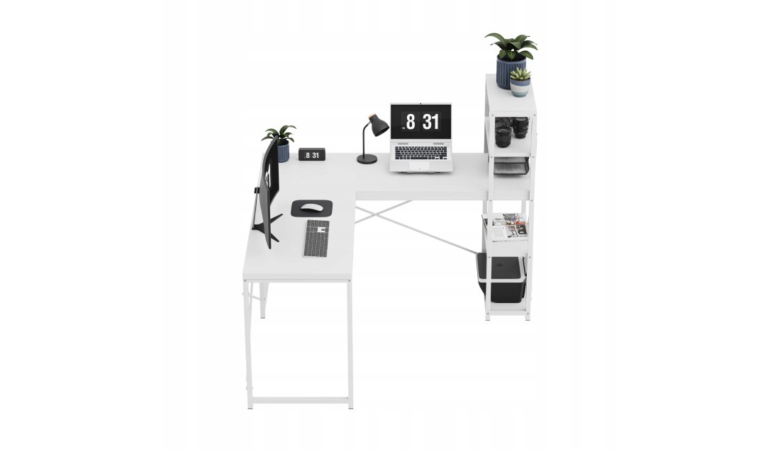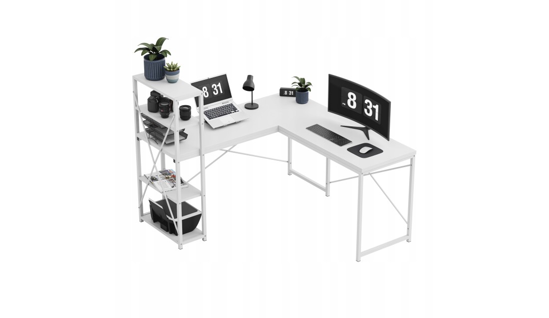 - Narożne biurko z półkami