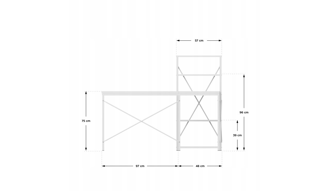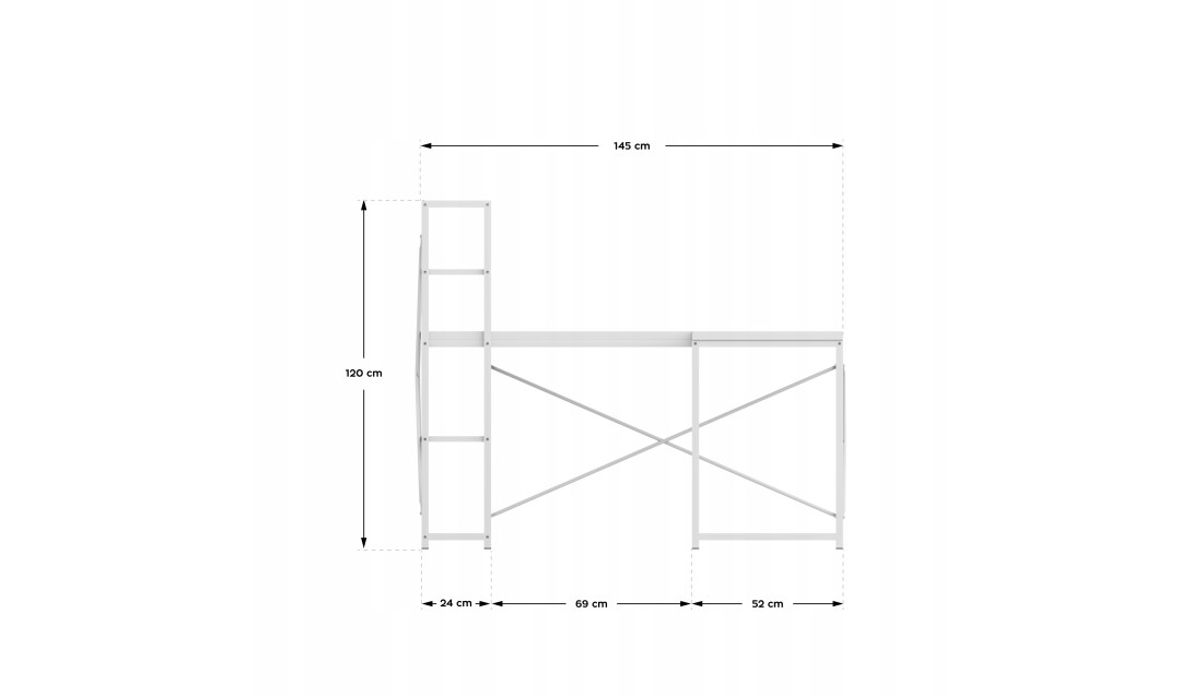 Duża przestrzeń robocza o wymiarach 145 cm x 145 cm daje swobodę działania, niezależnie od tego, czy pracujesz z laptopem, dokumentami, czy potrzebujesz miejsca na dodatkowy monitor. Liczne półki to praktyczne rozwiązanie, które ułatwia organizację – zawsze znajdziesz miejsce na książki, akcesoria czy dekoracje, które stworzą przyjemną atmosferę.