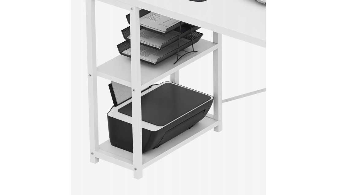 MarkAdlerBiurko Narożne z półkami Nowoczesny stolik biurowy Mark Adler