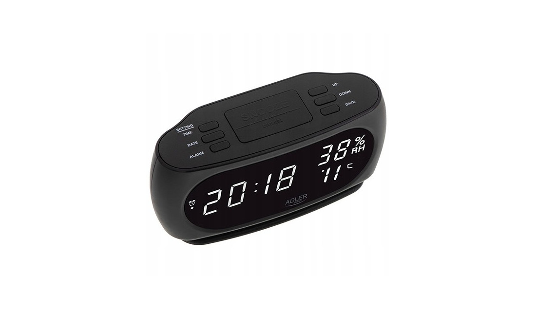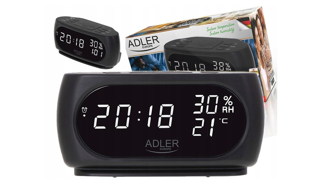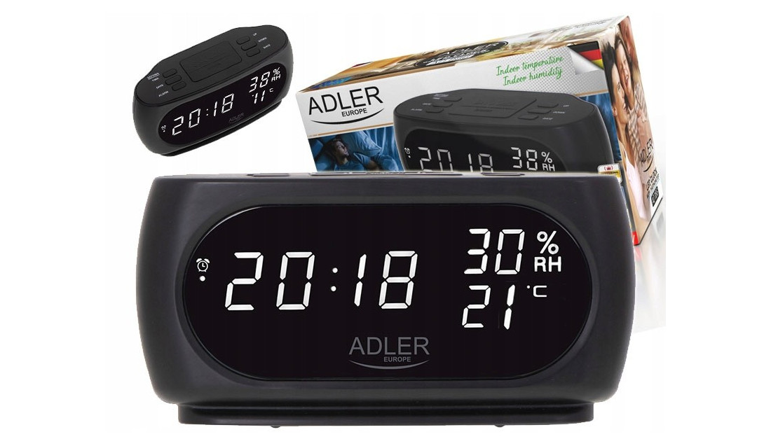 Niewielki, ale estetyczny i bardzo skuteczny budzik. Pokazywana godzina jet doskonale widoczna, dzięki wyświetlaczowi Ledowemu i dużym cyfrom. Budzik zasilany jest z sieci elektrycznej, ma też wbudowane bateryjne zasilanie podtrzymania pamięci. Budzik pokazuje temperatura i wilgotność wewnątrz pomieszczenia. Dużą zaletą jest czytelny wyświetlacz LED, z którego łatwo odczytasz godzinę w każdych warunkach oświetleniowych.