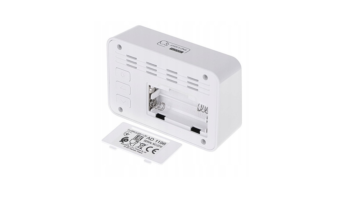 Budzik AD 1196 to urządzenie o wielu przydatnych funkcjach, które możesz wybrać w zależności od swoich potrzeb. Przede wszystkim posiada 3 oddzielne ustawienia godzin alarmów i wyświetla: czas, datę, temperaturę, wilgotność. Dużą zaletą jest czytelny podświetlany wyświetlacz, z którego łatwo odczytasz godzinę i temperaturę. Budzik zasilany jest 2 bateriami AAA. Wyświetla: czas, datę, temperaturę, wilgotność.