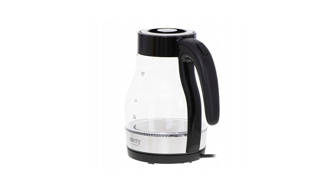 Duży, elektryczny czajnik rodzinny, pozwalający sprawnie zagotować wodę na herbatę dla 6-7 osób dzięki mocy 2200W. Zaopatrzony w wyraźny wskaźnik poziomu wody, wyłączy się automatycznie po jej zagotowaniu. Blokada uniemożliwi również włączenie pustego czajnika, oszczędzając w ten sposób energię i dbając o bezpieczeństwo użytkownika. Filtr osadów zapewni natomiast odpowiednią jakość wody. Dla wygody został zaopatrzony w obrotową podstawę, płaskie dno oraz grzałkę za stali szlachetnej i lampkę informująca o zagotowaniu wody. Szklany i elegancki pozwala zagotować na raz 1,7l wody.