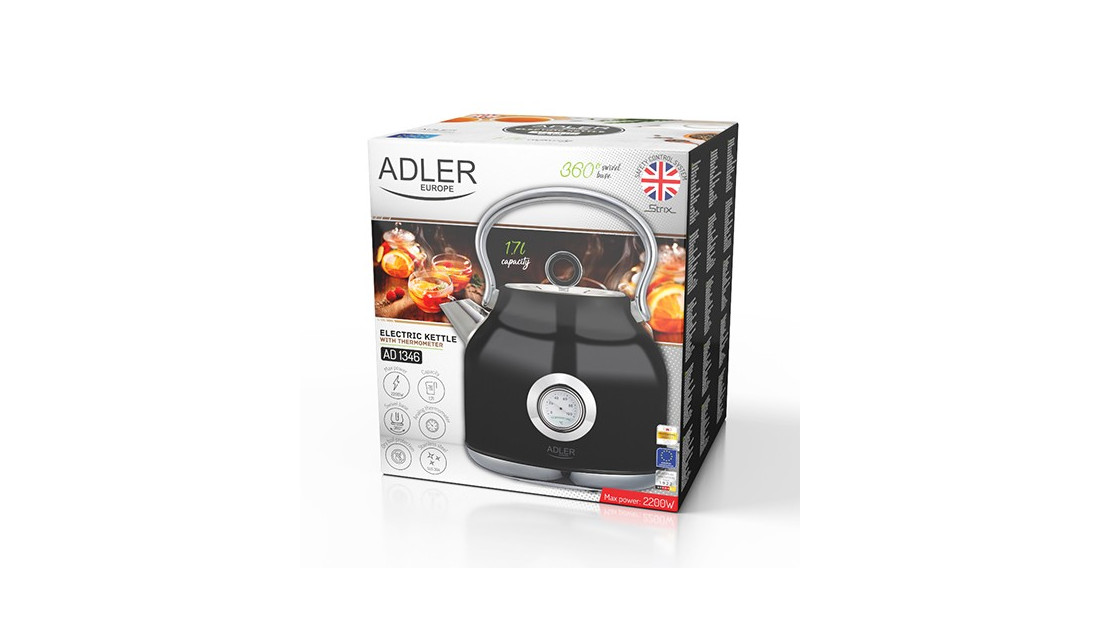 Klasyczny, 1,7-litrowy czajnik elektryczny z termometrem systemem kontroli bezpieczeństwa STRIX, przydatny w każdej kuchni. Jego bezpieczeństwo zapewnia blokada uniemożliwiająca włączenie pustego czajnika oraz automatyczne wyłączenie po zagotowaniu wody. Funkcjonalność zwiększa stabilna podstawa i czytelny wskaźnik poziomu wody. Dysponuje mocą maksymalną 2200W i wykonany jest ze stali szlachetnej, co czyni go mistrzowskim rozwiązaniem, jeśli chodzi o szybkie gotowanie wody. Analogowy wskaźnik temperatury wody i smukły kształt to cechy, dzięki którym uzupełnisz wystrój pomieszczenia urządzonego w każdym stylu.