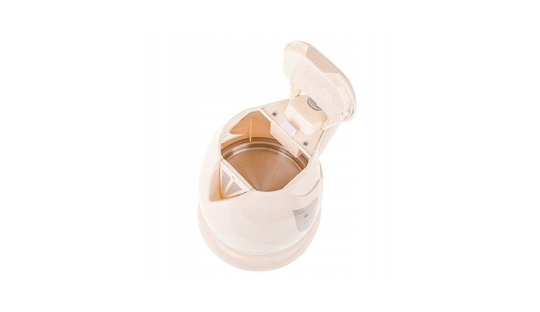 Klasyczny, 1-litrowy czajnik elektryczny, przydatny w każdej kuchni, biurze i akademiku. Bezpieczeństwo użytkowania zapewnia blokada, uniemożliwiająca włączenie pustego czajnika, oraz automatyczne wyłączenie po zagotowaniu wody. Czajnik wyposażony jest w filtr zatrzymujący osady, którego obecność poprawia smak i jakość wody. Funkcjonalność zwiększają: stabilna podstawa i czytelny wskaźnik poziomu wody. Bardzo wygodny dzięki zastosowaniu płaskiego dna i obrotowej podstawy. Wykonany w eleganckim kolorze kawy z mlekiem, może pochwalić się mocą 850 W.