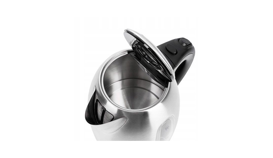 Duży, elektryczny czajnik rodzinny, pozwalający sprawnie zagotować wodę na herbatę dla 6-7 osób dzięki mocy 2200 W. Zaopatrzony w wyraźny wskaźnik poziomu wody, wyłączy się automatycznie po jej zagotowaniu. Blokada uniemożliwi również włączenie pustego czajnika, oszczędzając w ten sposób energię i dbając o bezpieczeństwo użytkownika. Filtr osadów zapewni natomiast odpowiednią jakość wody. Dla wygody został zaopatrzony w obrotową podstawę i płaskie dno. Czajnik wykonany jest ze stali szlachetnej i zaopatrzony w lampkę kontrolną LED. Także wskaźnik poziomu wody jest podświetlany, co znacznie zwiększa jego czytelność. Charakteryzuje się elegancją i nowoczesną formą. W czajniku może naraz być podgrzewane aż 1,7 l wody, co wystarczy nawet na 10 filiżanek dobrej kawy.