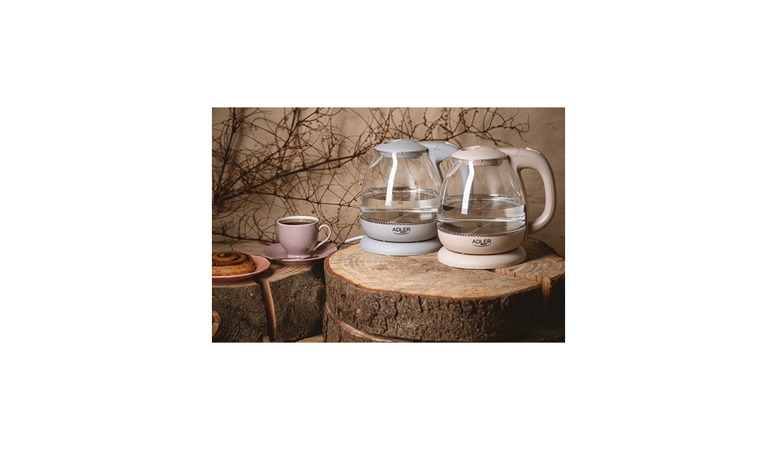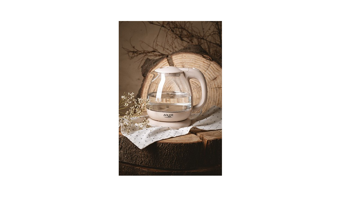 Kuchenny Czajnik Elektryczny 1L 1100W Szklany Beżowy LED Adler