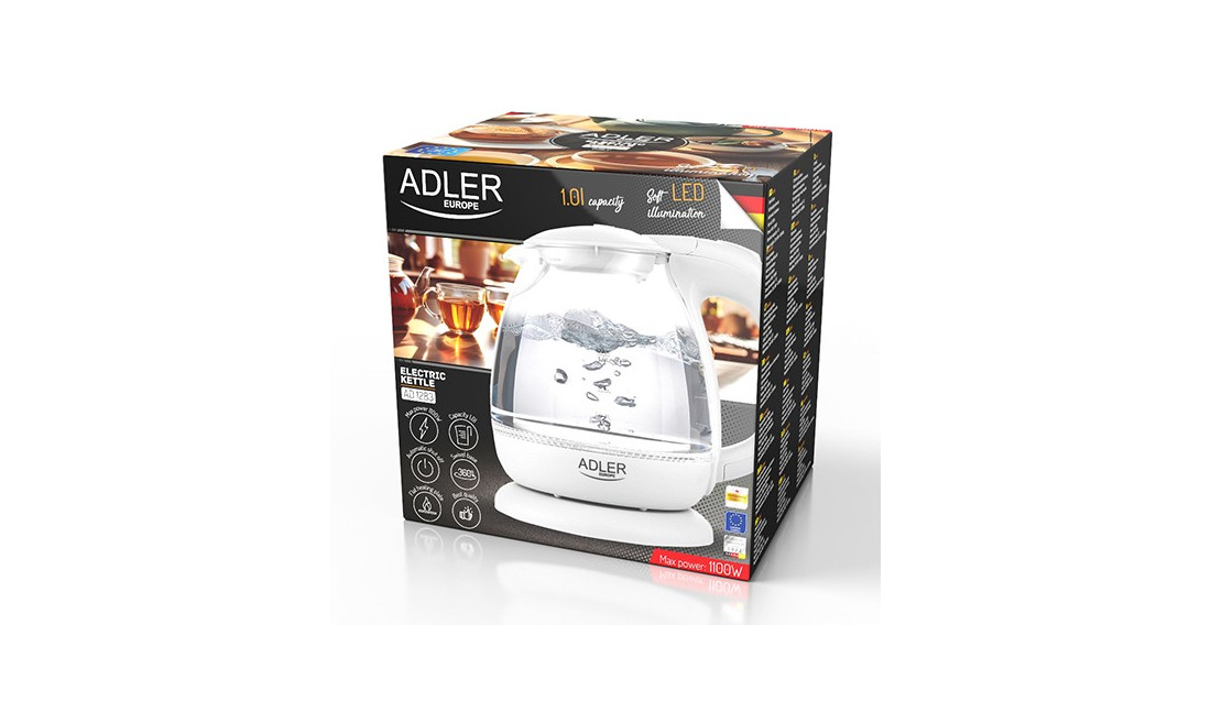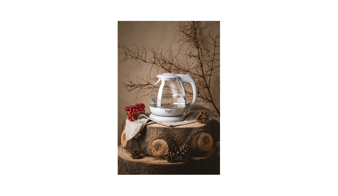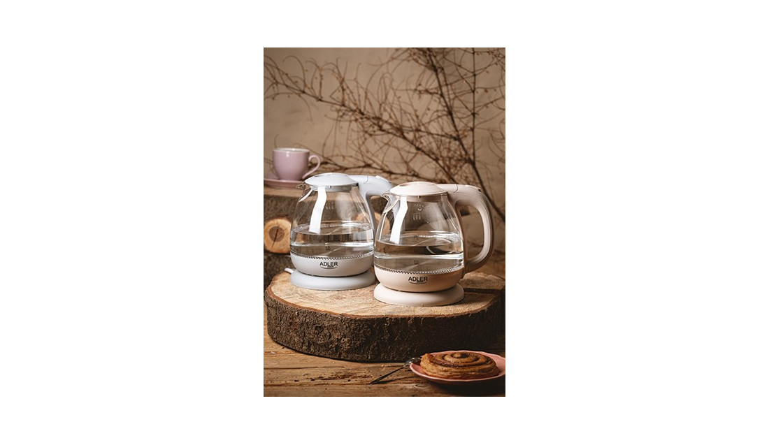 Nieduży, elektryczny czajnik o tradycyjnym kształcie dzbanka w nowoczesnej odsłonie. Pozwala sprawnie zagotować wodę na herbatę dla 3-4 osób dzięki mocy 1100W i pojemności 1 l. Czajnik wyłączy się automatycznie po zagotowaniu wody. Czajnik jest podświetlany diodami LED. wyposażony jest w blokadę uniemożliwiającą włączenie pustego czajnika, oszczędzając w ten sposób energię i dbając o bezpieczeństwo użytkownika. Dla wygody został zaopatrzony w obrotową podstawę, płaskie dno oraz grzałkę za stali szlachetnej. Pozwala zagotować na raz 1,0l wody.