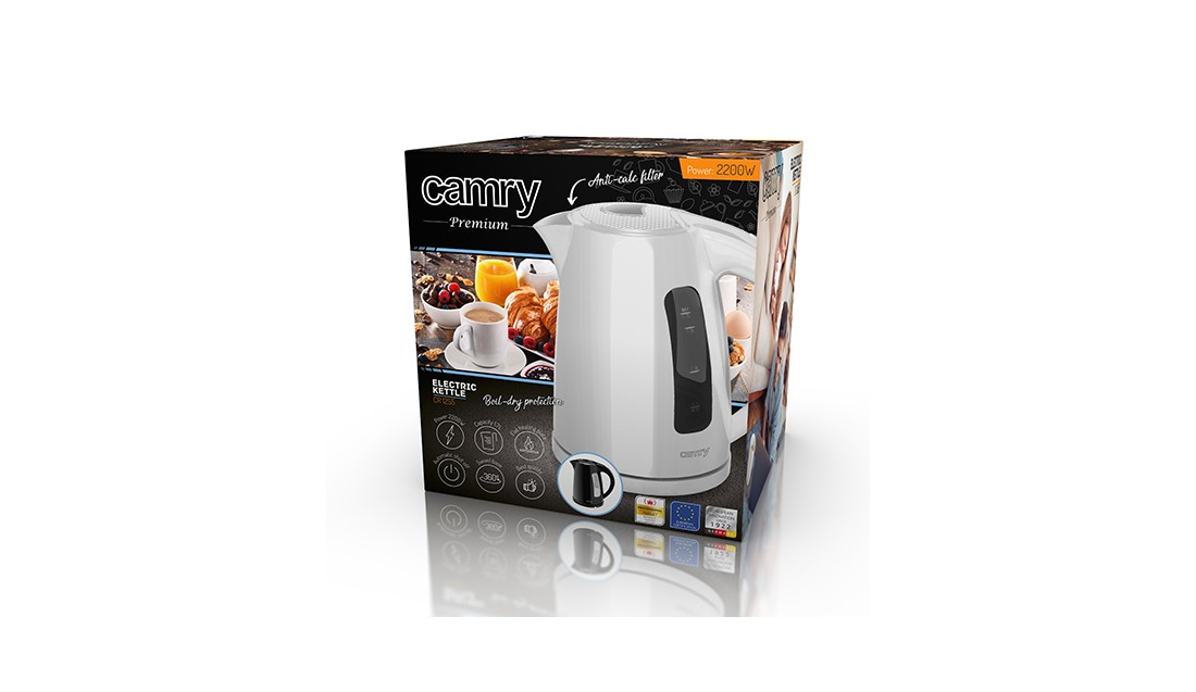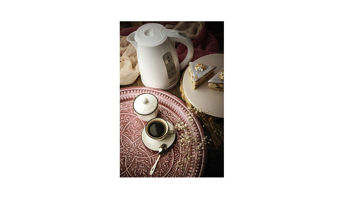 Duży, elektryczny czajnik rodzinny, pozwalający sprawnie zagotować wodę na herbatę dla 6-7 osób dzięki mocy 2200W. Zaopatrzony w wyraźny wskaźnik poziomu wody, wyłączy się automatycznie po jej zagotowaniu. Blokada uniemożliwi również włączenie pustego czajnika, oszczędzając w ten sposób energię i dbając o bezpieczeństwo użytkownika. Filtr osadów zapewni natomiast odpowiednią jakość wody. Dla wygody został zaopatrzony w obrotową podstawę, płaskie dno oraz grzałkę za stali szlachetnej i lampkę informująca o zagotowaniu wody. Pozwala zagotować na raz 1,7l wody.