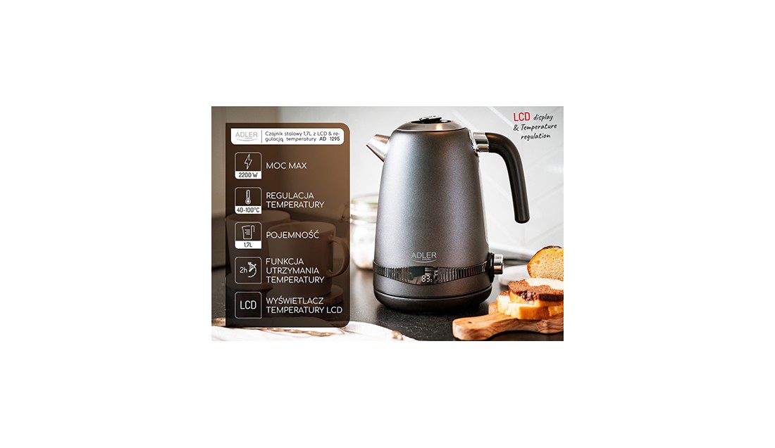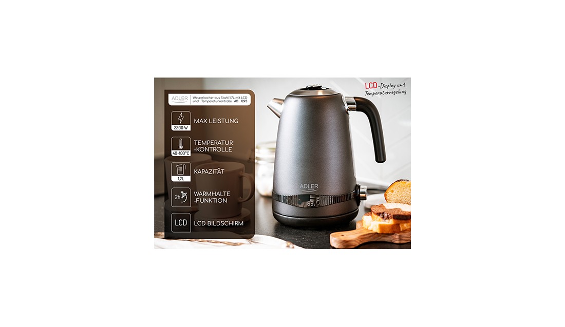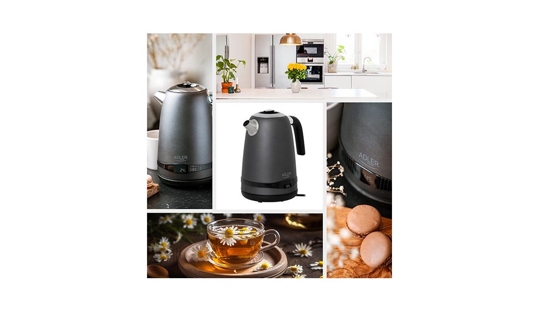 Czajnik Metalowy 1,7L z LCD Regulacja temperatury 2200W Adler