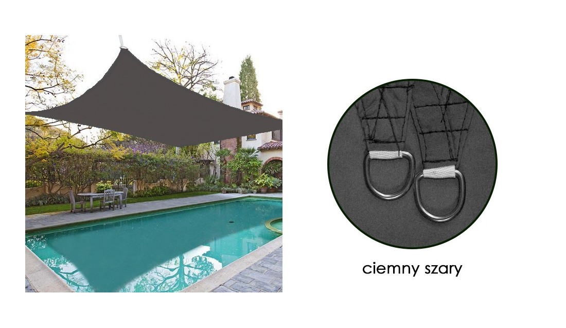 Żagiel Przeciwsłoneczny Ogrodowy Wodoodporny w kolorze szarym, NAJLEPSZE rozwiązanie do pełnego relaksu podczas LETNICH DNI na tarasie, w ogrodzie lub na kempingu.