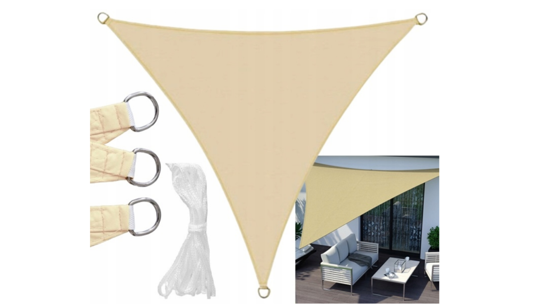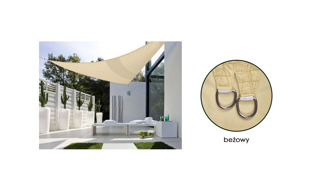 Żagiel Przeciwsłoneczny Ogrodowy Wodoodporny w kolorze beżowym, NAJLEPSZE rozwiązanie do pełnego relaksu podczas LETNICH DNI na tarasie czy w ogrodzie.