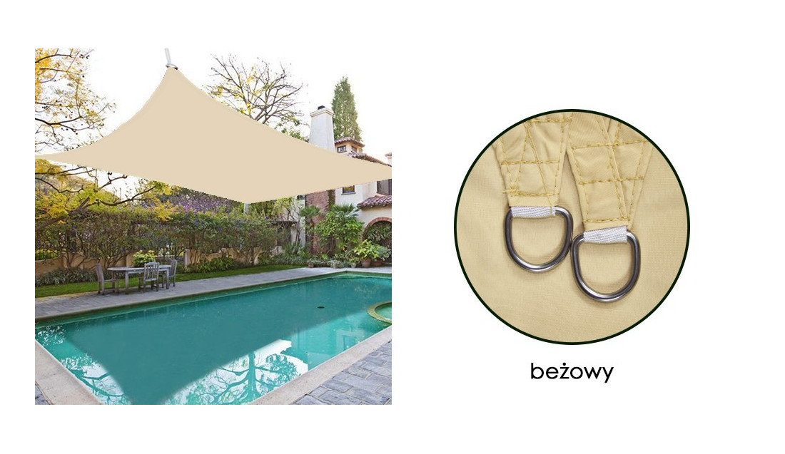 Żagiel Przeciwsłoneczny Ogrodowy Wodoodporny w kolorze beżowym, NAJLEPSZE rozwiązanie do pełnego relaksu podczas LETNICH DNI na tarasie czy w ogrodzie.