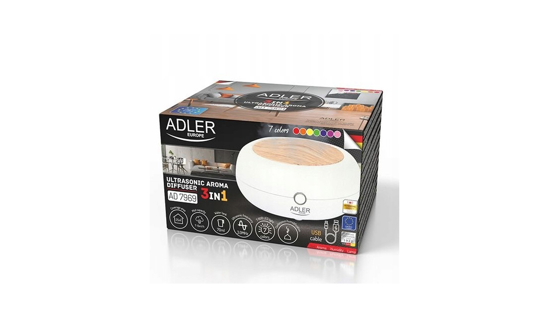 AdlerUltradźwiękowy Dyfuzor Zapachowy USB 3w1 Adler