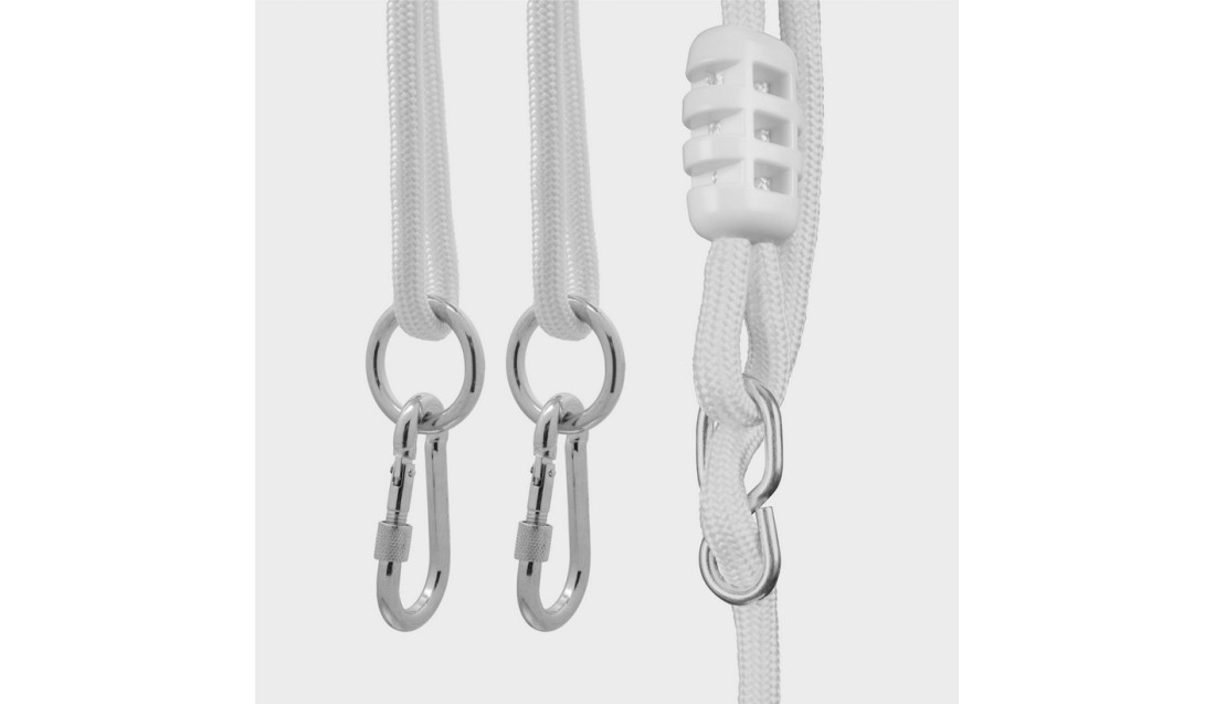- Huśtawka jest gotowa do zawieszenia – wystarczy tylko wyregulować długość lin!