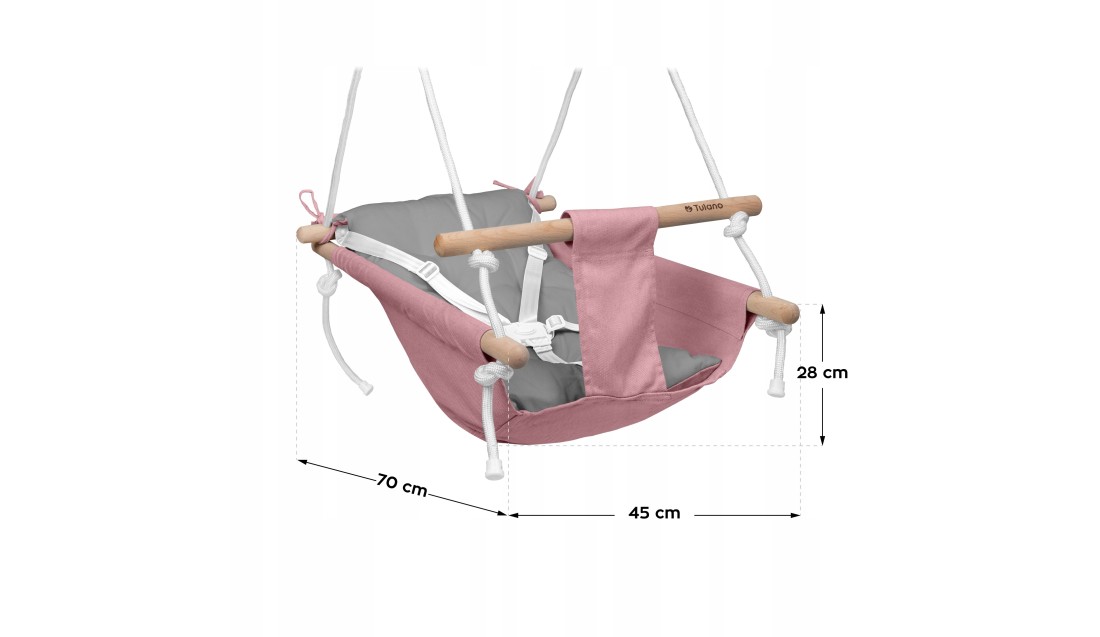 O wygodę malucha zadba miękka, biało – szara poduszka, którą można używać dwustronnie. Dzięki temu błyskawicznie zmienisz design huśtawki, dopasowując ją do każdej aranżacji.