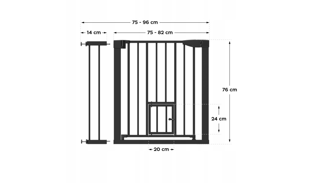 - Szerokość bramki 82 cm i przedłużka 14cm