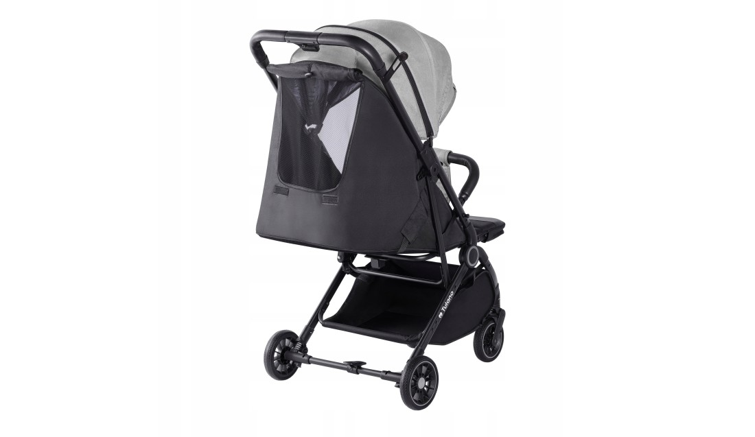 Wózek posiada pojemny kosz pod siedziskiem, który pomieści zarówno zakupy, jak i niezbędne akcesoria dla dziecka.