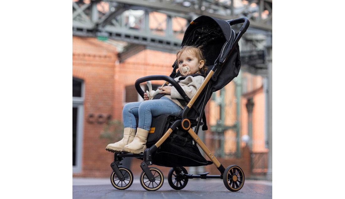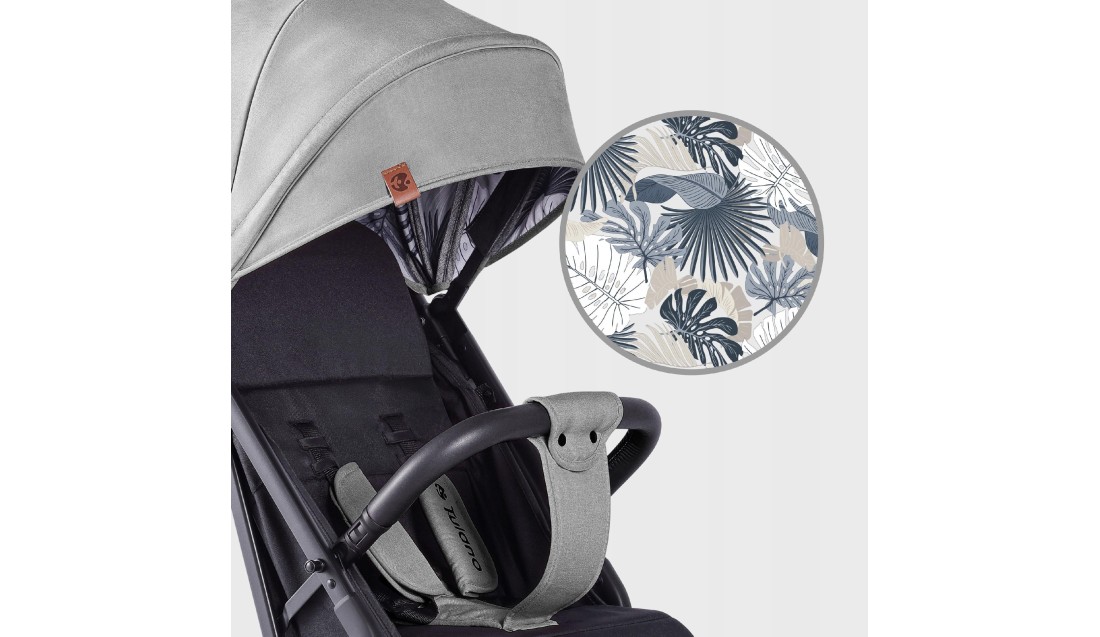 Stylowe wykończenie z ekoskóry dodaje elegancji, a przy tym ułatwia utrzymanie czystości. Pałąk, rączka oraz regulowany podnóżek pokryty warstwą ekoskóry sprawiają, że zarówno dziecko, jak i rodzic cieszą się wygodą użytkowania.