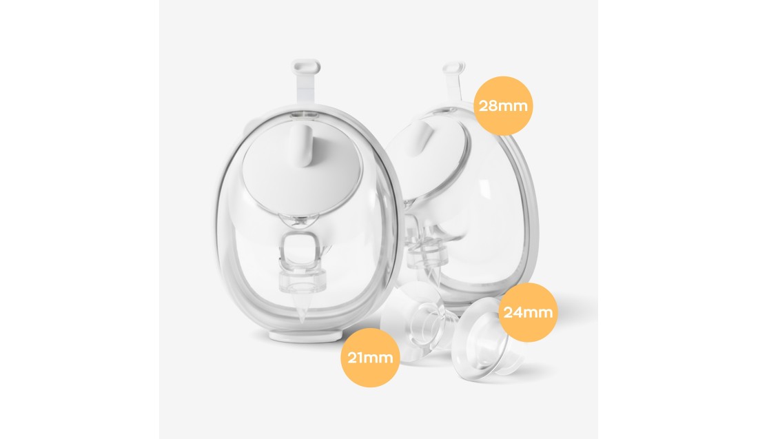 W zestawie znajdują się wkładki do lejków w rozmiarach 21 mm, 24 mm i 28 mm - łatwe dopasowanie laktatora do różnych rozmiarów piersi.