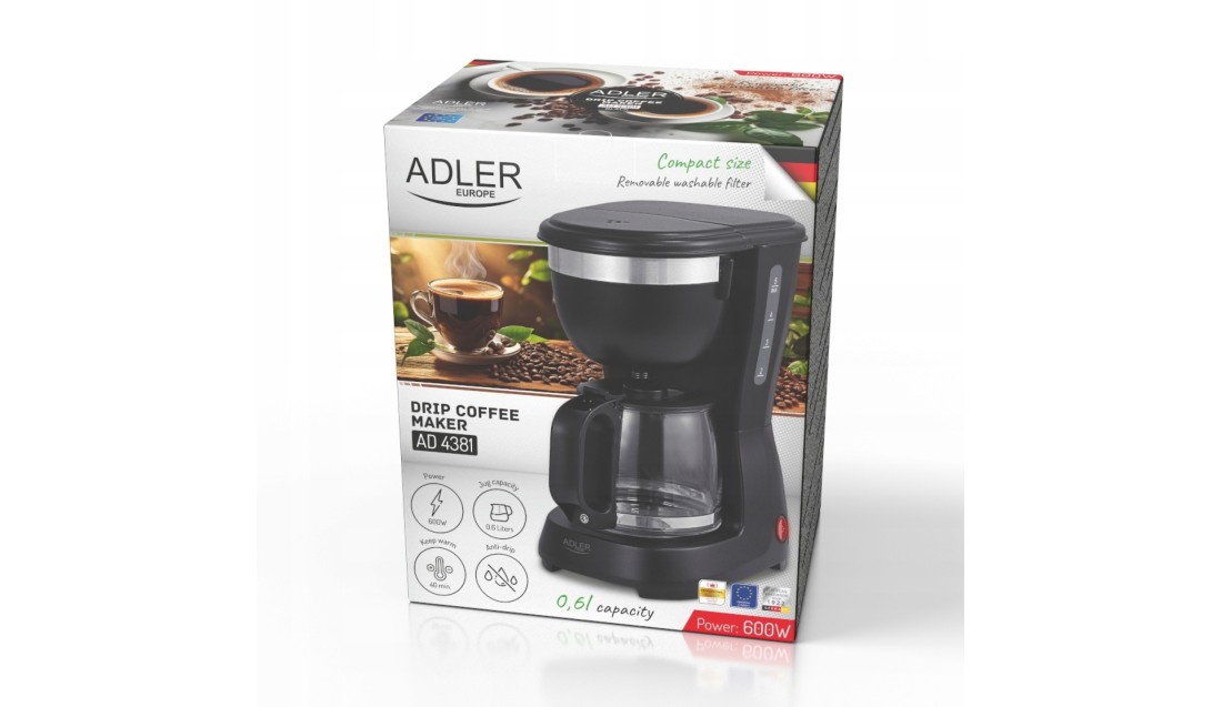AdlerEKSPRES PRZELEWOWY AD 4381B 0,6 l KOMPAKTOWY MOC 600W FILTR