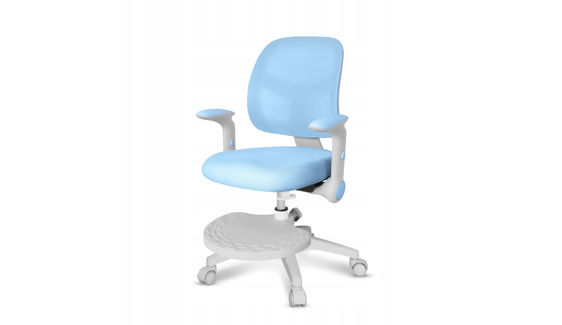 Podnóżek ułatwia przyjęcie ergonomicznej pozycji podczas siedzenia i zapobiega męczeniu się nóg. Regulacja góra – dół umożliwia dopasowanie krzesła obrotowego do wzrostu, gwarantując dziecku stabilne podparcie.