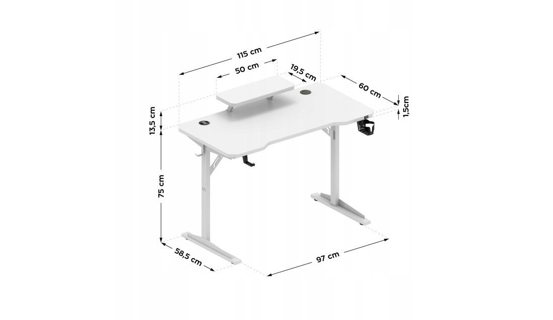 Szeroka powierzchnia robocza o wymiarach 115x60 cm - zapewnia komfort pracy z komputerem, dokumentami i akcesoriami.