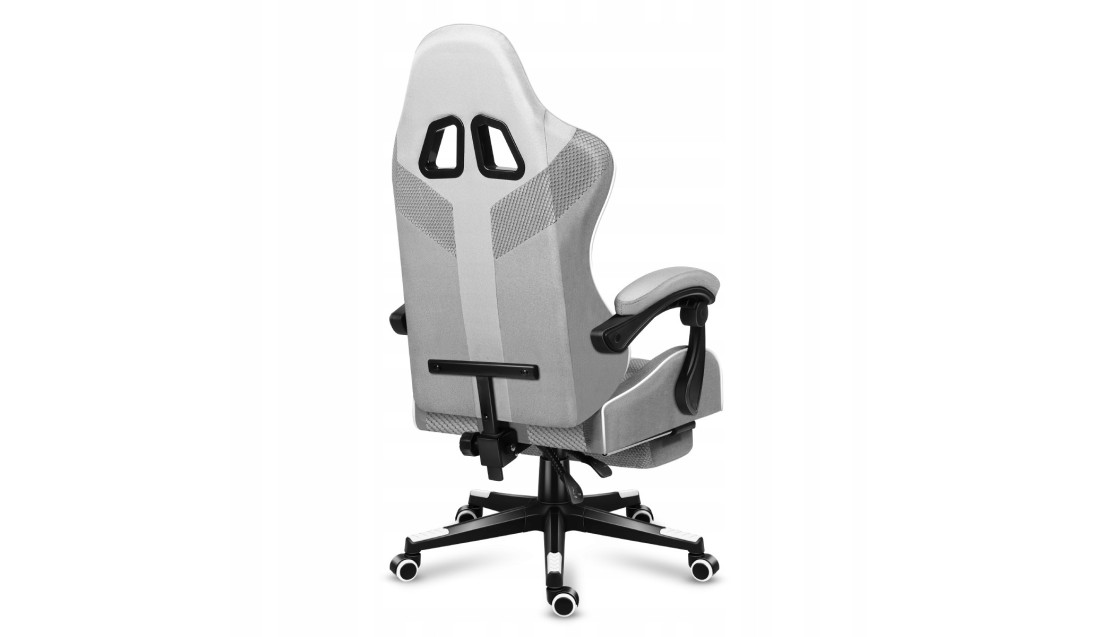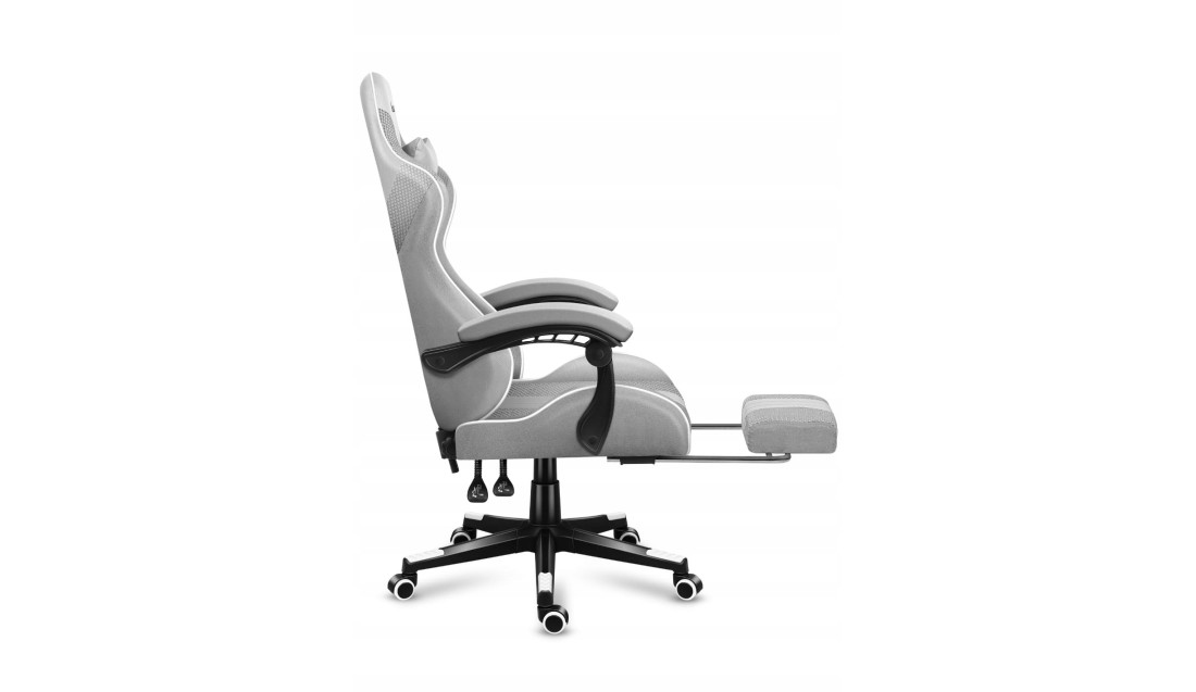 - Materiałowy fotel gamingowy z podnóżkiem