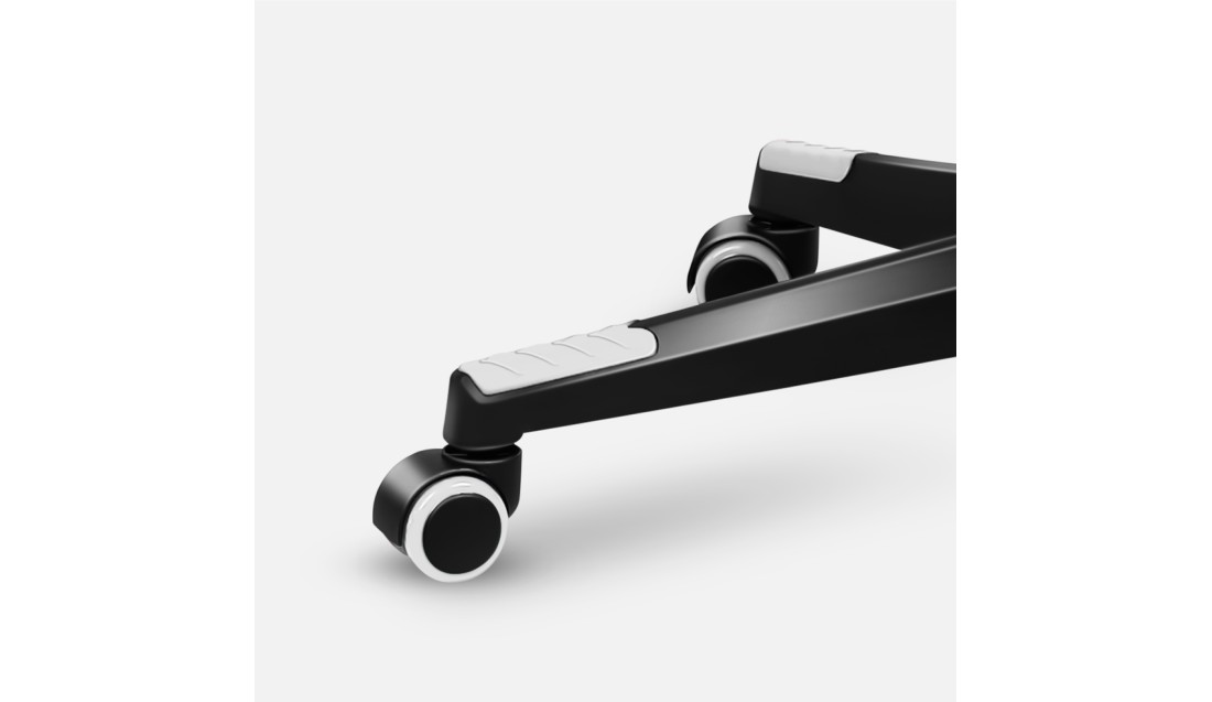 Poliuretanowo-kauczukowe, podwójne koła o średnicy 50 mm, wykonane ze specjalnego materiału ochronią podłogę przed zarysowaniami i otarciami.