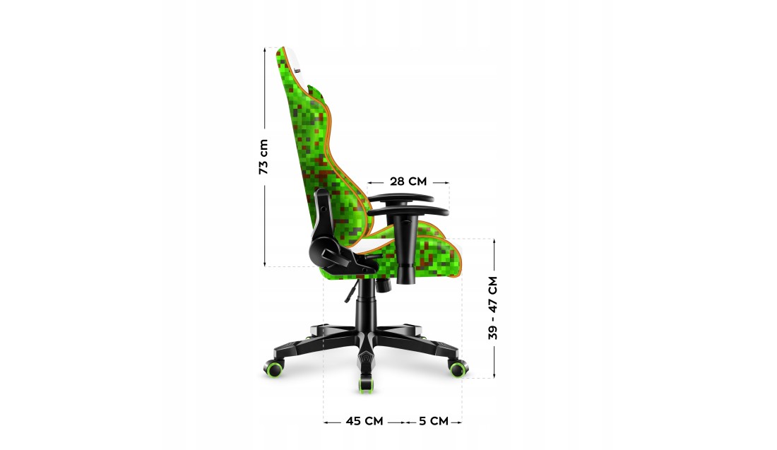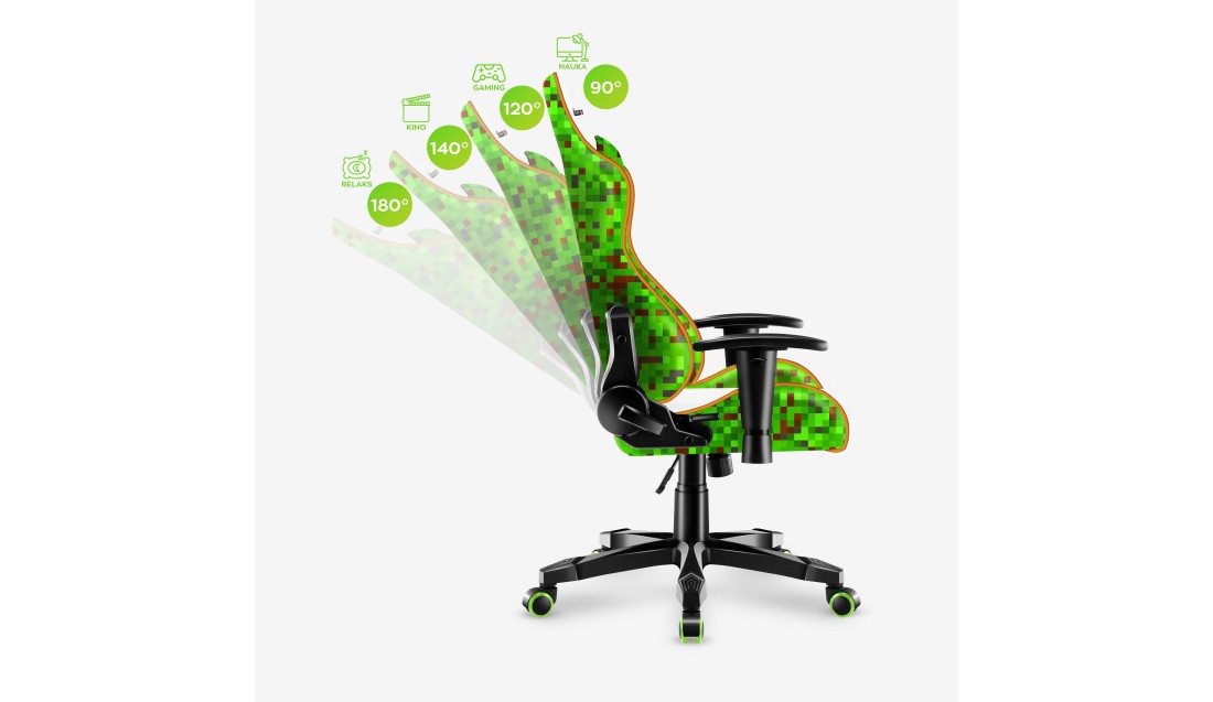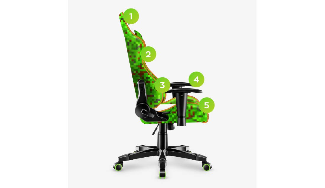 Materiał zastosowany na poduszkach, oraz na górnych i bocznych częściach fotela stworzony jest z mnóstwa splotów, odpowiednio cyrkuluje powietrze, jest bardzo wytrzymały, a jednocześnie przyjemny w dotyku. Ale jego wytrzymałość to połowa sukcesu, a największe wrażenie robi opracowany specjalnie dla Rangera wzorek z komputerowych pixeli. Styl najmodniejszych gier komputerowych dla dzieci teraz dostępny jest na Twoim fotelu!