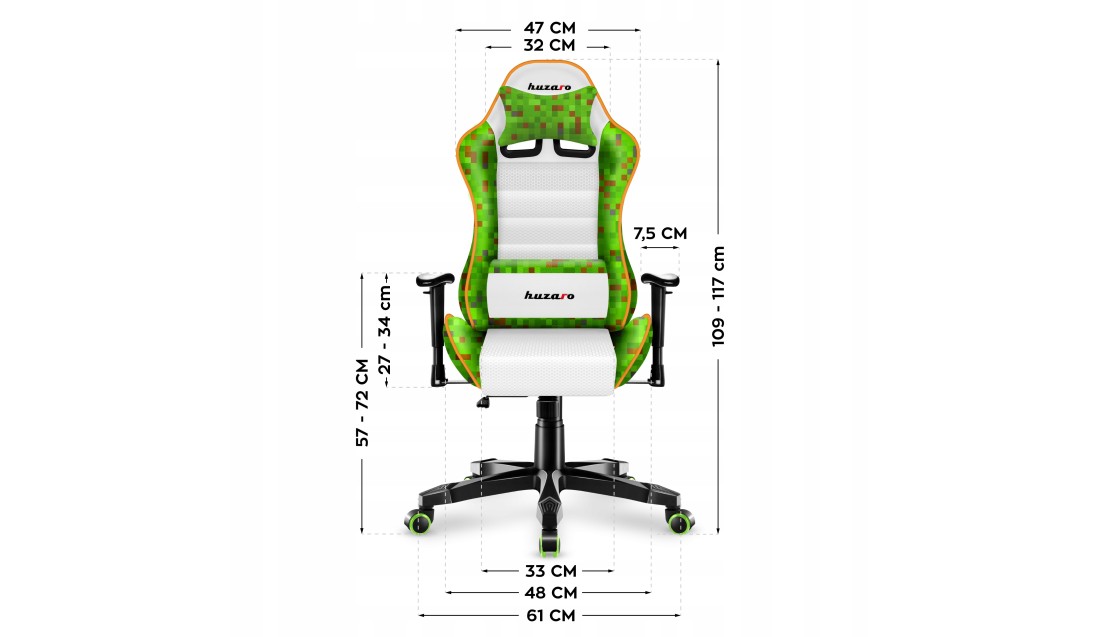 Użyto wyłącznie materiałów pochodzących od zaufanych dostawców. Rama fotela wykonana jest ze stali, co gwarantuje bezpieczeństwo i trwałość. Jakość produktów jest dla nas kluczowa. Prowadzone są regularne kontrole, aby wszystkie fotele Huzaro stały zawsze na najwyższym poziomie.