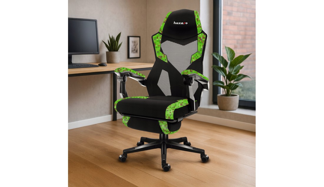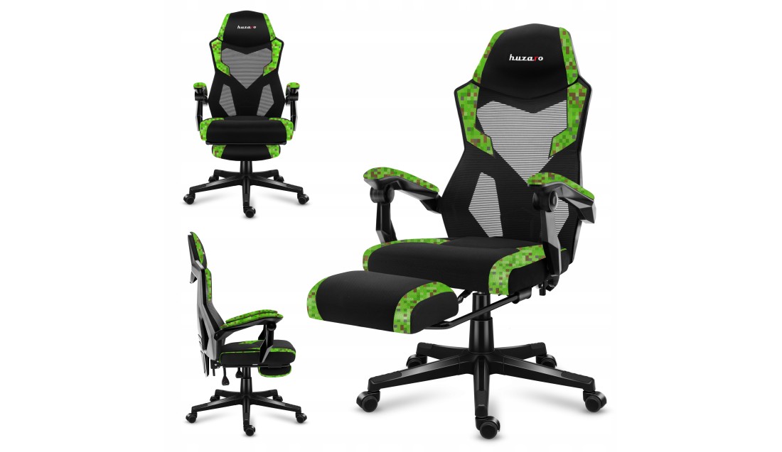 Fotel gamingowy z podnóżkiem do komputera gracza regulowany biurowy Huzaro