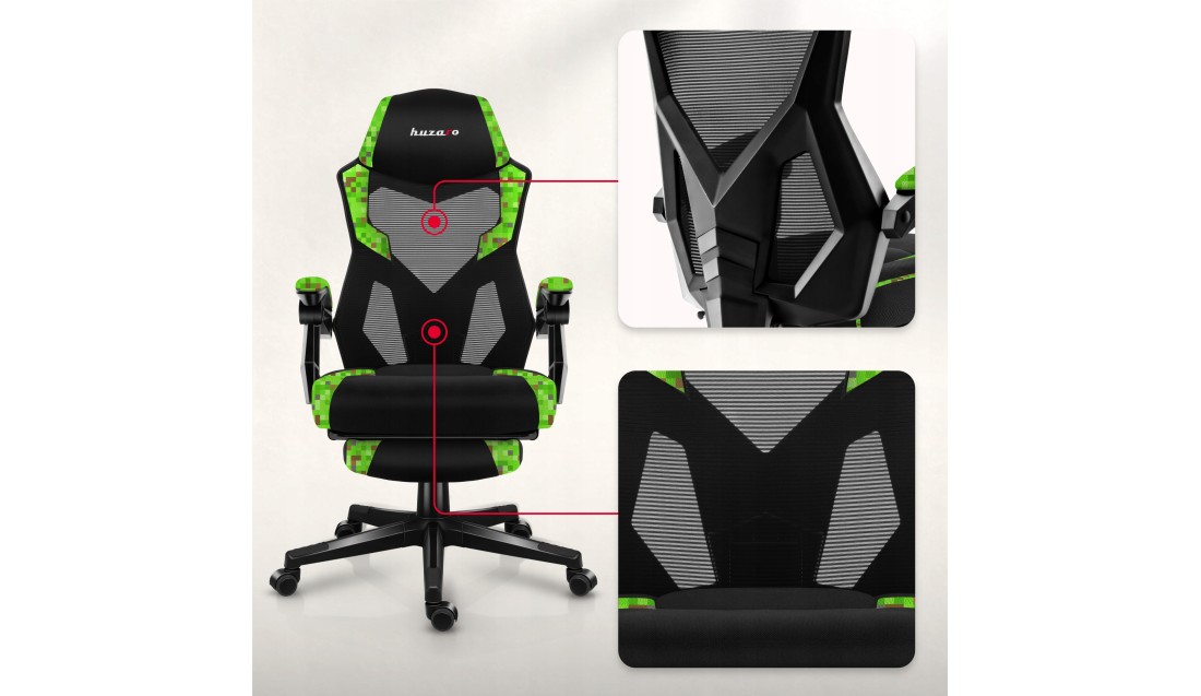 Tkanina i siatka mesh gwarantują świetną wentylację, eliminując poczucie gorąca, nawet podczas intensywnych maratonów gamingowych. Długie godziny w fotelu? Żaden problem!