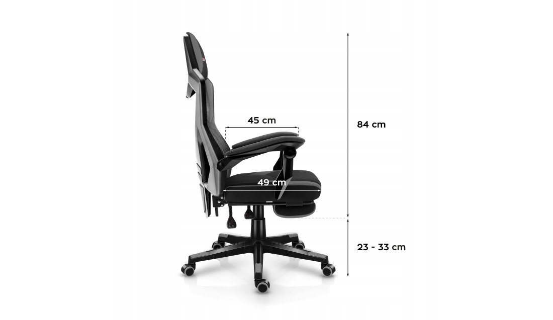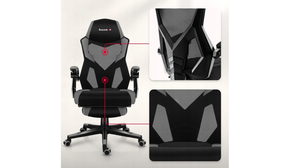 Tkanina i siatka mesh gwarantują świetną wentylację, eliminując poczucie gorąca, nawet podczas intensywnych maratonów gamingowych. Długie godziny w fotelu? Żaden problem!