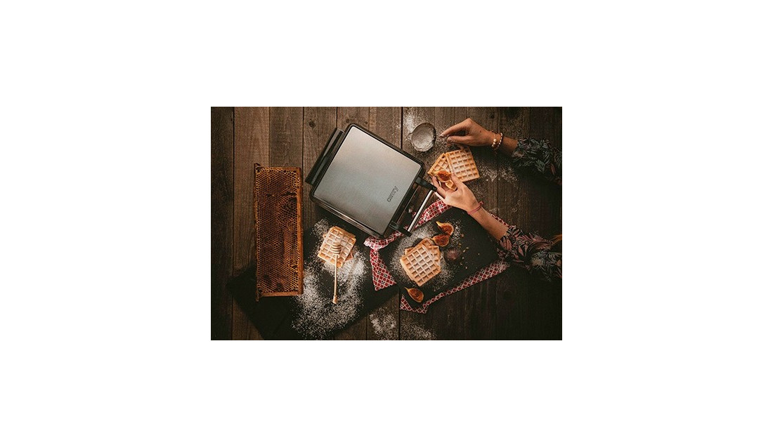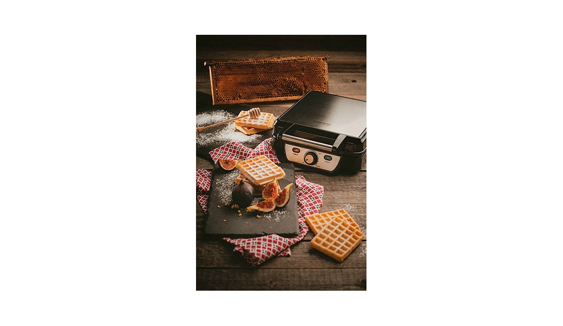 Elegancka gofrownica o dużej mocy 1500 W z termostatem. Doskonała do przygotowywania chrupiących gofrów. Jednocześnie wypieka 4 gofry. Zaopatrzona jest w płyty grzewcze pokryte powłoką zabezpieczającą przed przywieraniem, co ułatwia czyszczenie. Wygodna także w transporcie, dzięki gotowości do przechowywania w pozycji pionowej.