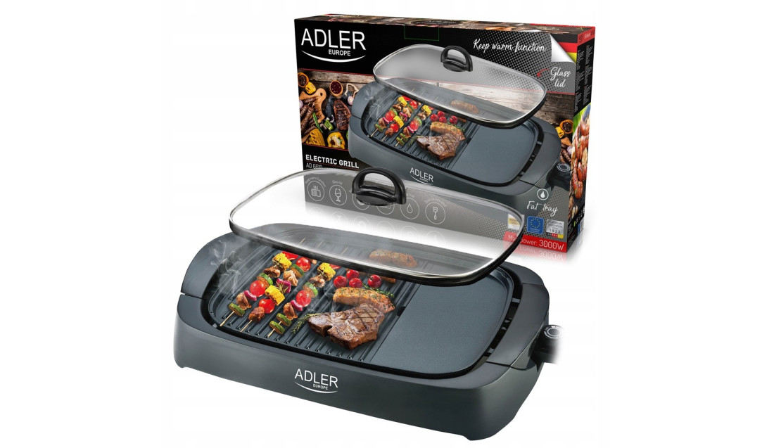 Wysokiej klasy grill elektryczny o dużej mocy maksymalnej 3000W, na którym łatwo przyrządzić smakowite dania. Dwa pola grzejne - płaskie i karbowane pozwalają przyrządzić zarówno jedzenie smażone jak i grillowane.