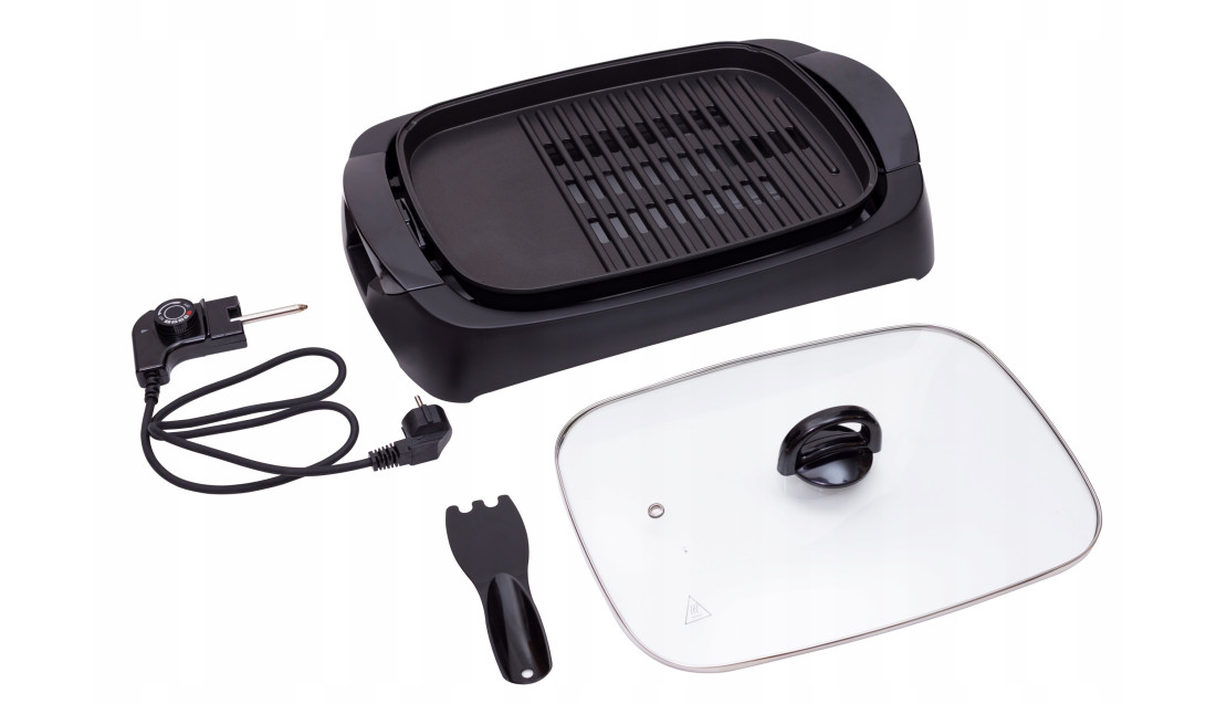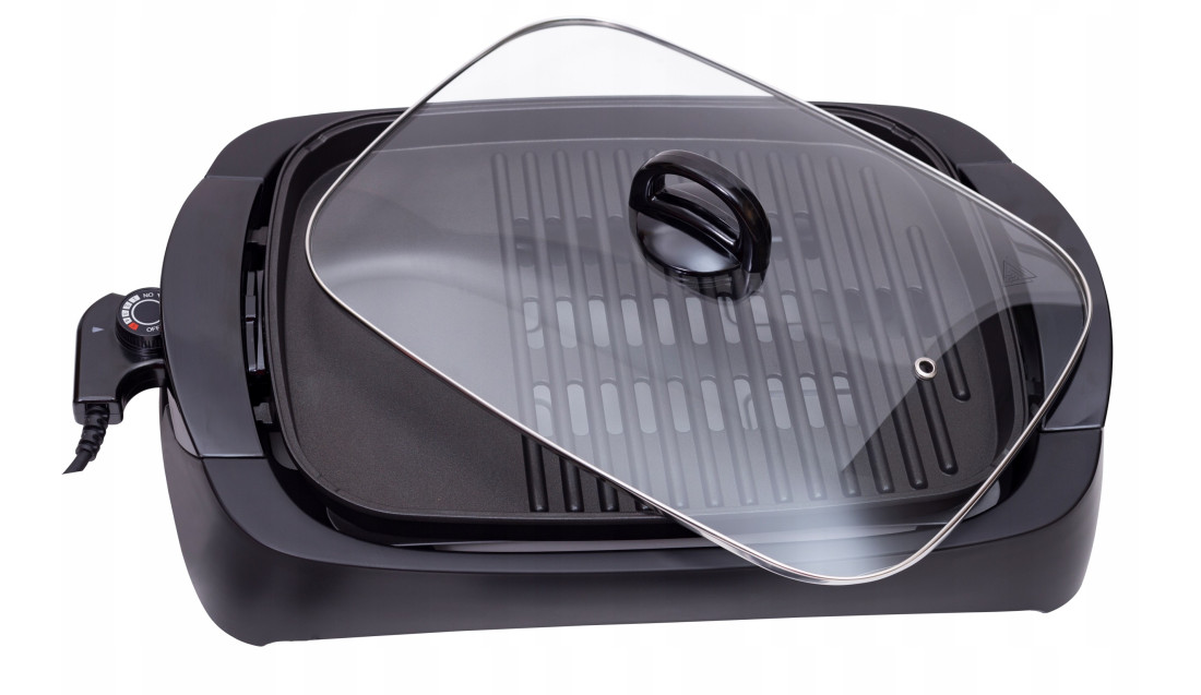 Dla wygody użytkownika grill ma szklaną, przezroczystą pokrywę z termoizolacyjnymi uchwytami. Temperaturę można regulować płynnie w dużym zakresie co pozwala na możliwość utrzymania odpowiedniej temperatury grilowanych produktów.
