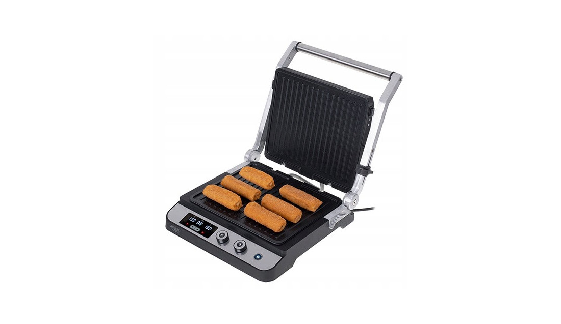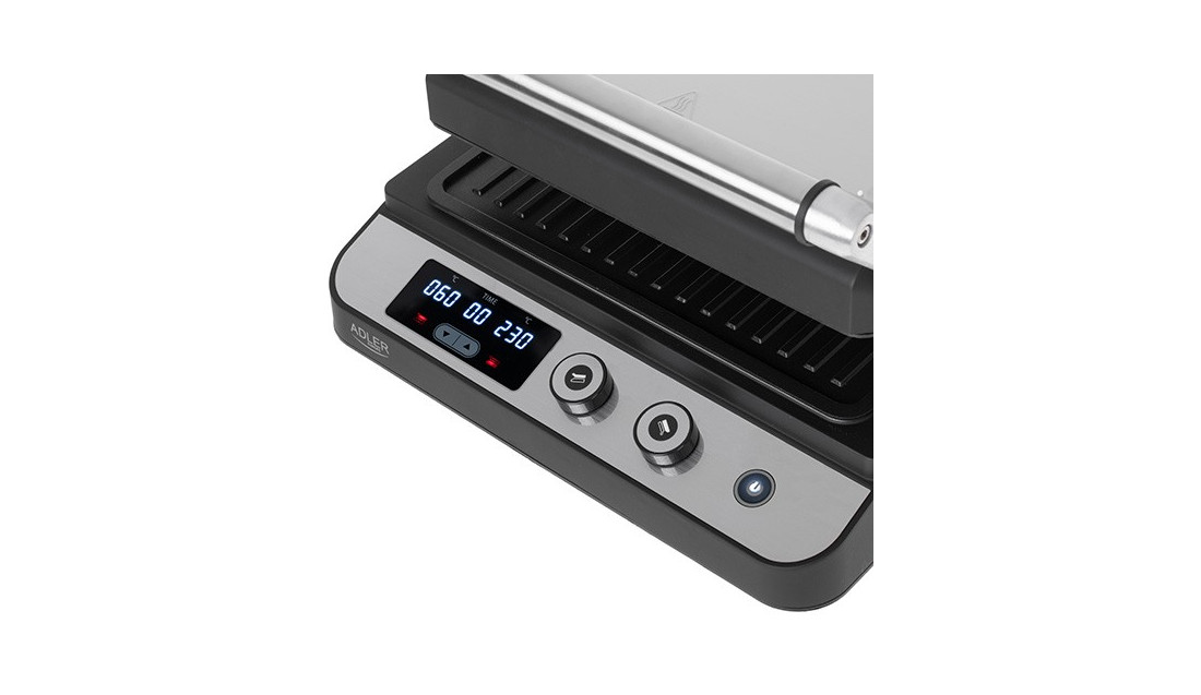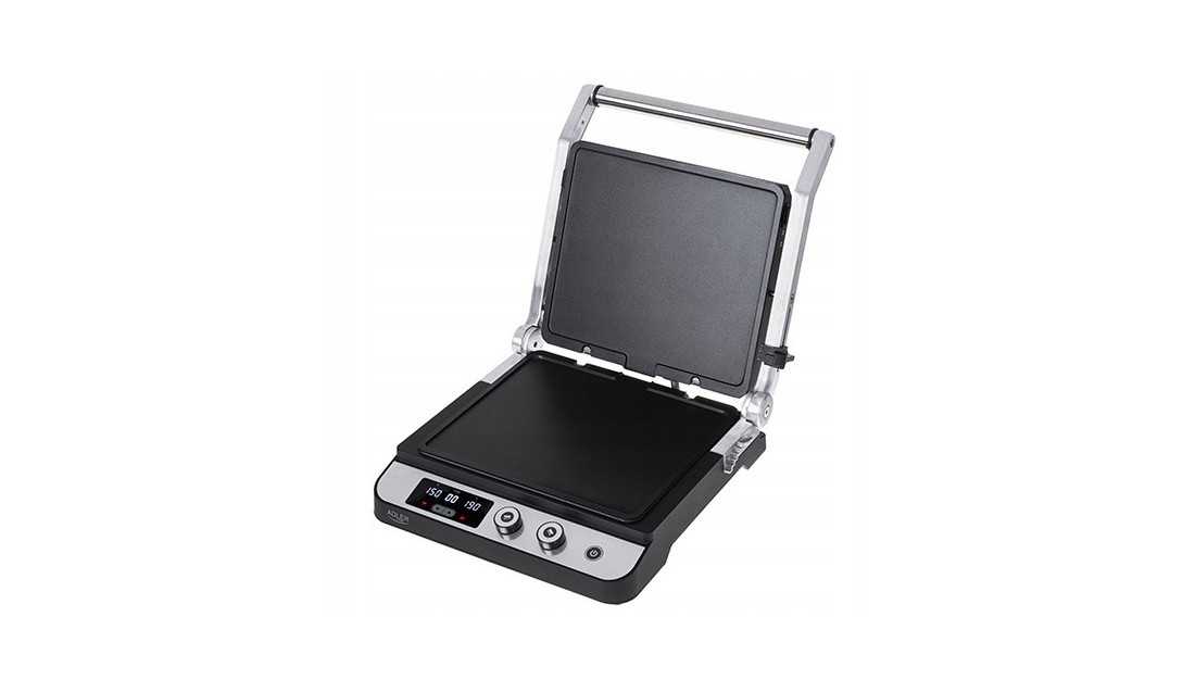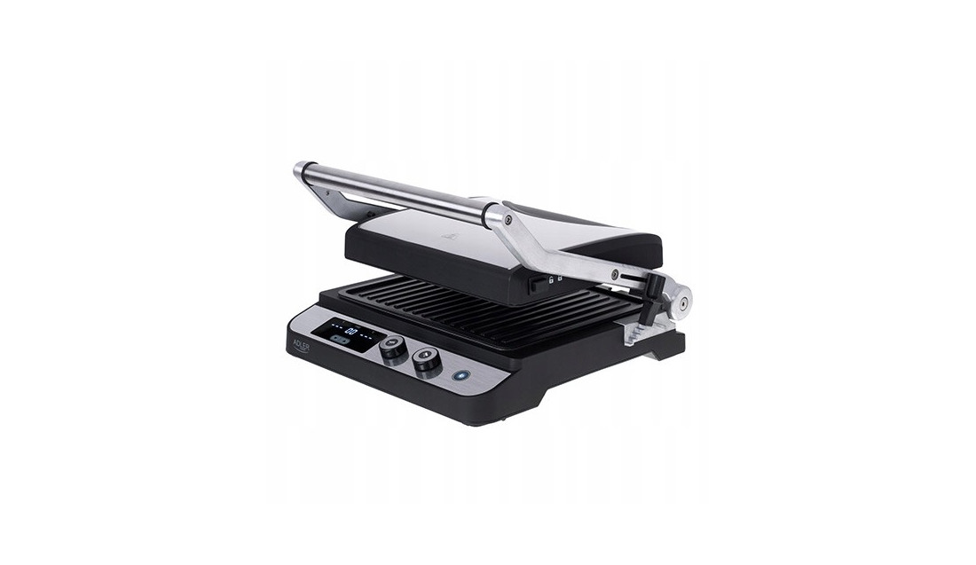 Grill elektryczny Adler 3059 z wyświetlaczem LED o maksymalnej mocy 3000W daje możliwość przygotowania szerokiej gamy ciepłych posiłków – od opiekanych burgerów, przez steki, karkówkę, kurczaka i inne mięsa, po grillowane warzywa i sery. Płyty grzejne są zabezpieczone teflonową powłoką, dzięki której potrawy nie przywierają, a późniejsze mycie zajmuje dosłownie chwilę. Dodatkowo powłoka pozwala grillować bez dodatku tłuszczu, oraz otwór odprowadzający tłuszcz sprawia, że potrawy są zdrowsze. Urządzenie posiada wygodny panel sterujący z wyświetlaczem LED.