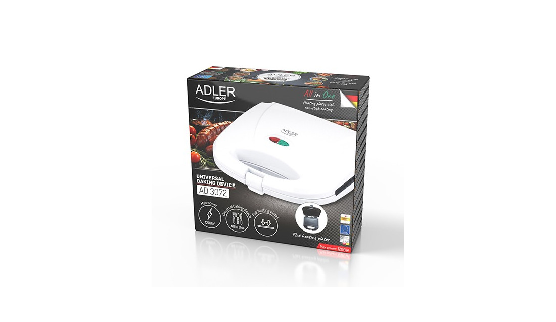 AdlerGrill Elektryczny Opiekacz 1200W Toster z Płaską Powierzchnią Biały Adler