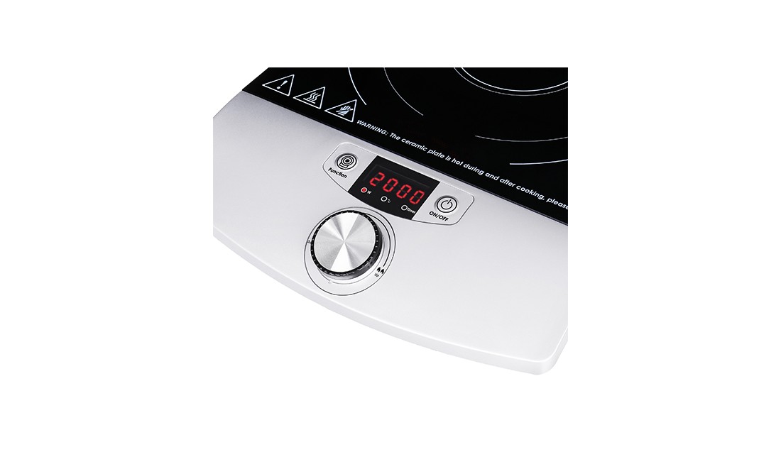- Powierzchnia ze Szkła Ceramicznego: Trwała i łatwa do czyszczenia, z polem grzewczym o średnicy 190mm.