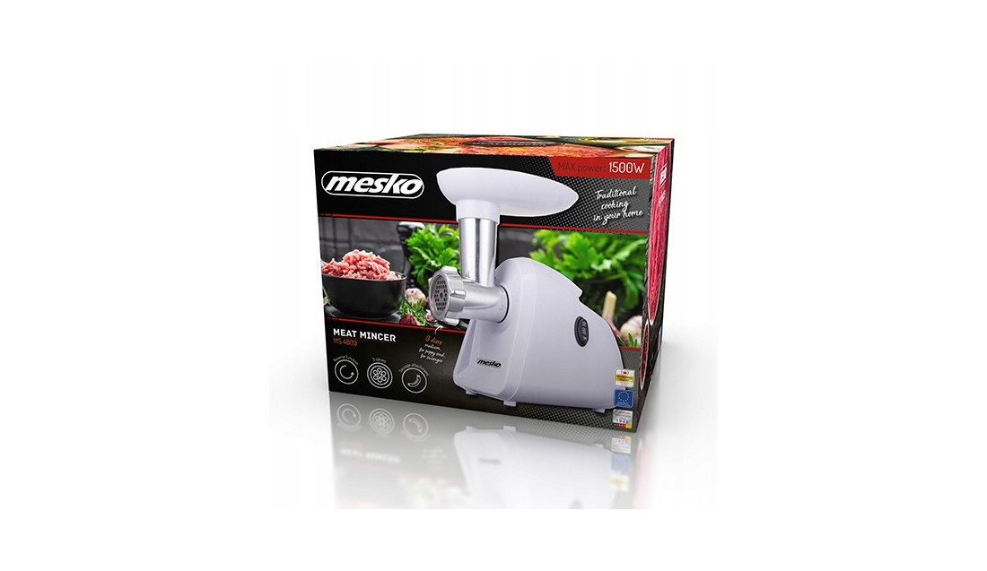 Solidne urządzenie, dla tych którzy chcą przygotować własne kiełbasy i mięsa mielone. Maszynka do mięsa wyposażona w 3 wymienne sitka: do kiełbasy, maku i sitko średnie. W zestawie także nasadka masarska i popychacz. Całość wykona z trwałych materiałów, łatwych do rozmontowania i czyszczenia. Użytkownik ma do wyboru 2 biegi (w przód i rewers). Maszynka korzysta standardowo z mocy maksymalnej 350 W, przy przełożeniu nawet na 1500 W.