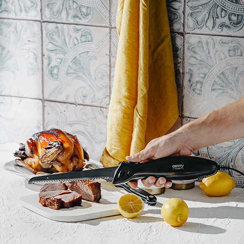 Przedstawiamy CR 4513 Nóż Elektryczny - niezawodne i wszechstronne narzędzie kuchenne, które ułatwi codzienne przygotowywanie posiłków. Dzięki wysokiej jakości ostrzom ze stali nierdzewnej, ten nóż elektryczny jest idealnym rozwiązaniem do krojenia mrożonek oraz różnorodnych produktów spożywczych. W zestawie znajdują się dwa różne noże oraz widelec, co czyni go nieocenionym pomocnikiem w każdej kuchni.