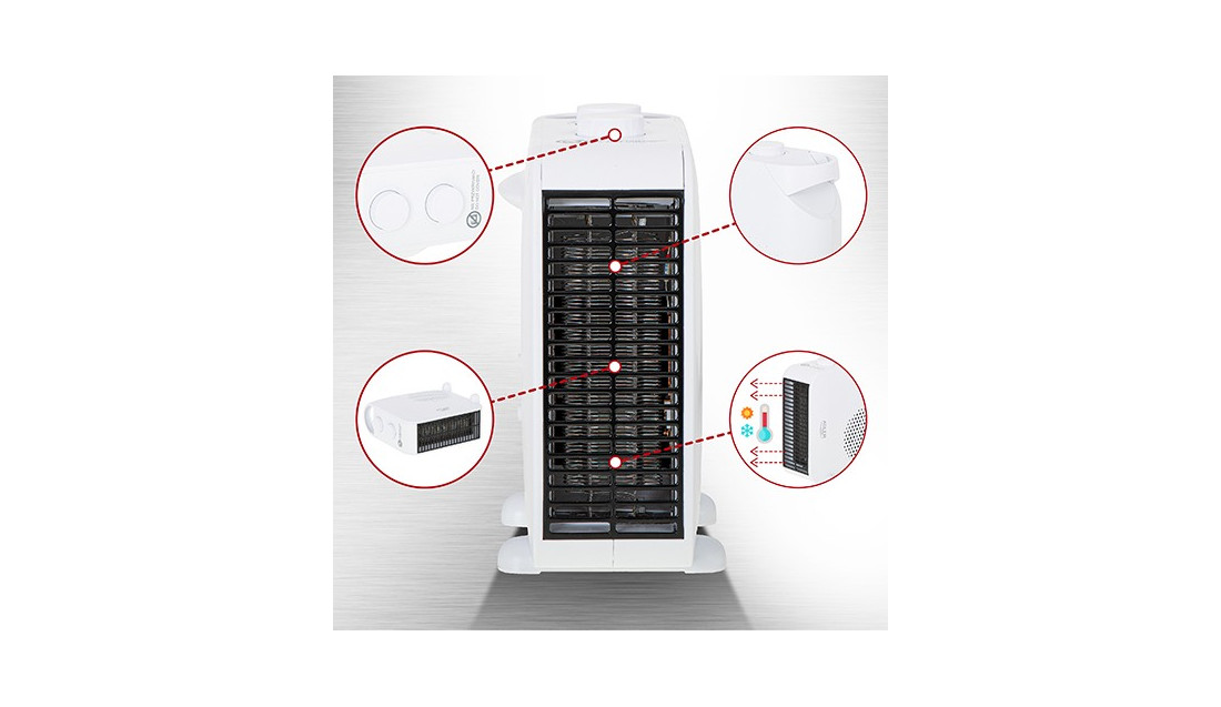Niezawodny termowentylator dwufunkcyjny. Może działać na dwóch poziomach mocy oraz posiada wbudowany termostat, dzięki czemu pozwala na regulację ilości wytwarzanego ciepła w zależności od potrzeb użytkownika. Może być również uruchomiony jako urządzenie chłodzące, wytwarzające zimny nadmuch. Z tego względu termowentylator ma swoje zastosowanie zarówno w czasie chłodnych jak i gorących dni. Dla zwiększenia bezpieczeństwa, urządzenie wyposażono w zabezpieczenie przed przegrzaniem. Dodatkową zaletą jest możliwość ustawienia termowentylatora w pozycji poziomej lub pionowej.
