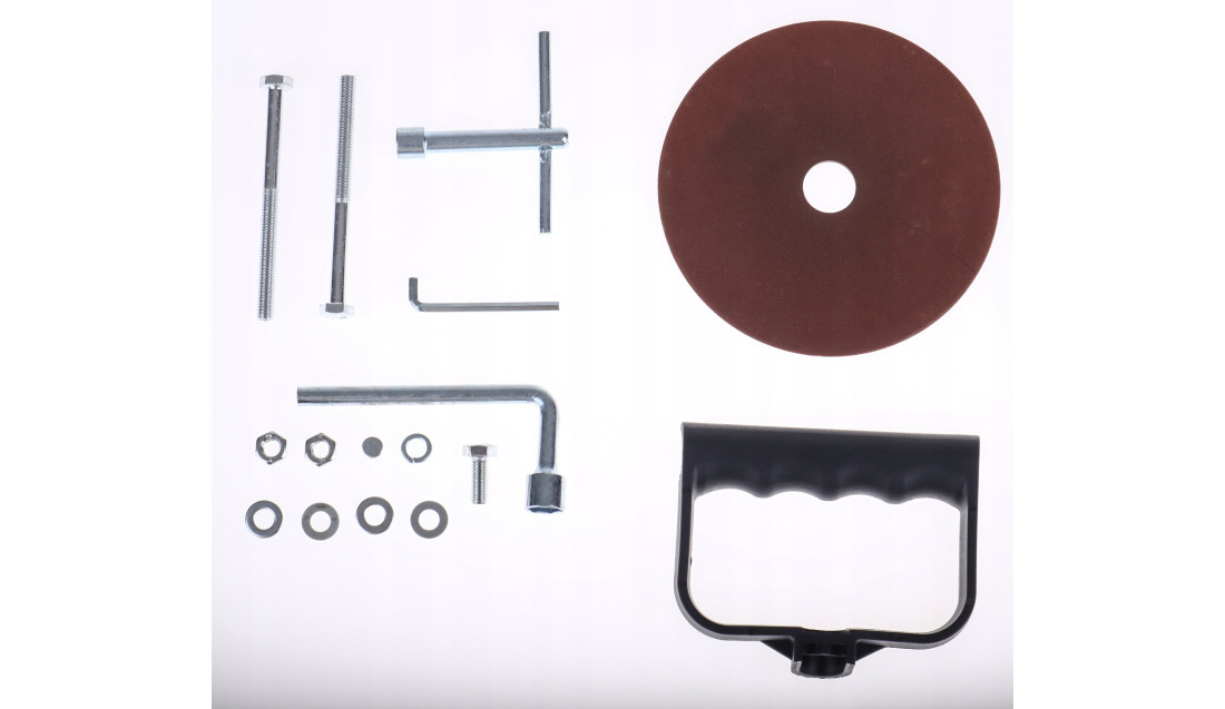 Szlifierka posiada w zestawie wszystkie elementy potrzebne do montażu i uruchomienia.