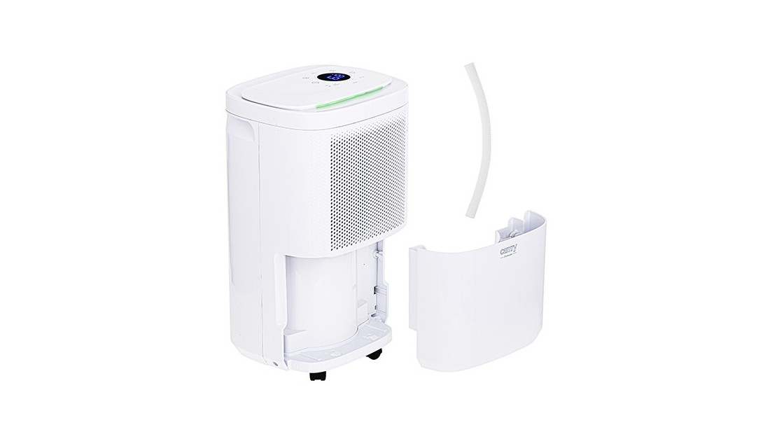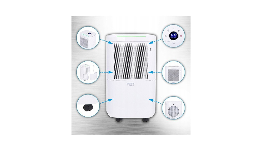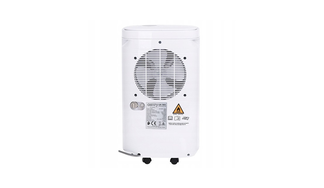 CR 7851 to kompresorowy osuszacz powietrza o wydajności 10 litrów wody na dobę z wyświetlaczem LCD. Urządzenie ma 4 tryby osuszania: zwykły, ciągły, mocny i suszenie odzieży. Osuszacz Wyposażony jest precyzyjny czujnik wskazujący aktualny poziom wilgotności w pomieszczeniu. Urządzenie po osuszeniu pomieszczenia do oczekiwanego poziomu wilgotności automatycznie wyłącza kompresor zapewniając cyrkulację powietrza poprzez działający wentylator. Dodatkowo osuszacz został wyposażony w kontrolkę wilgotności wskazującą 3 kolorami poziom wilgotności na froncie urządzenia. Funkcja blokady rodzicielskiej i wygaszenia wyświetlacza stanowią dodatkowe atuty produktu.