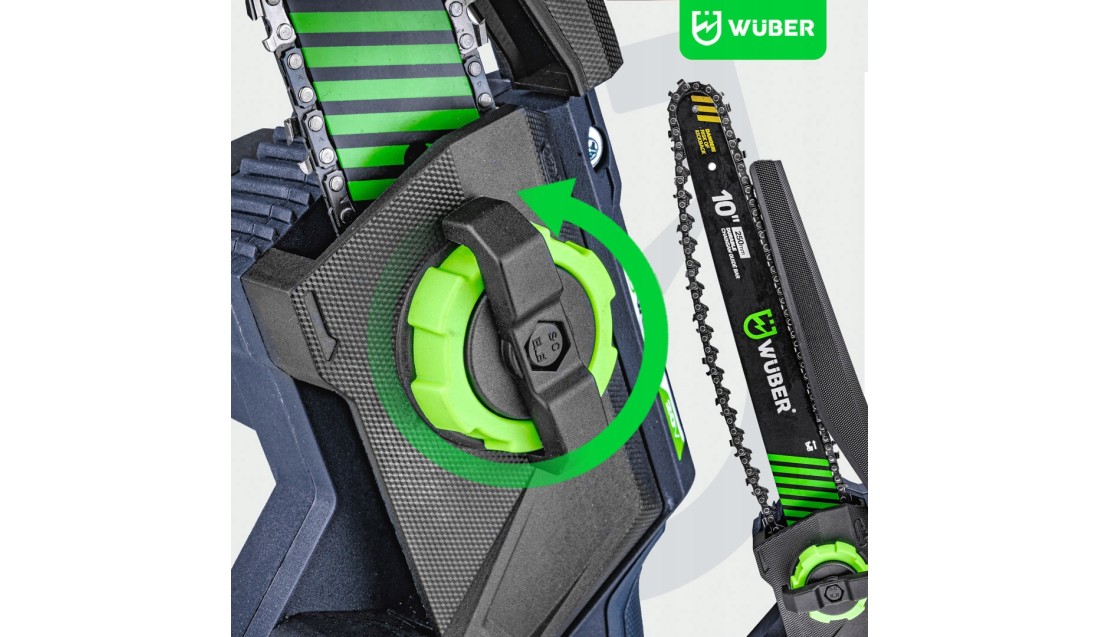 - Beznarzędziowy naciąg łańcucha — Regulacja naprężenia w kilka sekund za pomocą pokrętła.